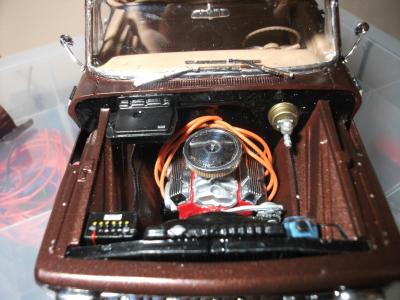 Thank you for the kind comments everyone, they really mean a lot to me! I find it funny that you guys like the interior because I wasn't sure if I liked it or not when I finished, I thought there might have been too much green. Harry, the reason I am using kitchen foil is budget. I decided that I would rather spend the money saved on foil to buy supplies that don't have similar products already laying around the house. It can be a pain to work with, especially the glue, but it makes me work a little harder and you can't beat free! Thanks again and here is a picture I forgot to include before. The crusty stuff on the distributor is super glue, I used it to attach the wires to the distributor cap and I may have gone a little overboard with the glue...