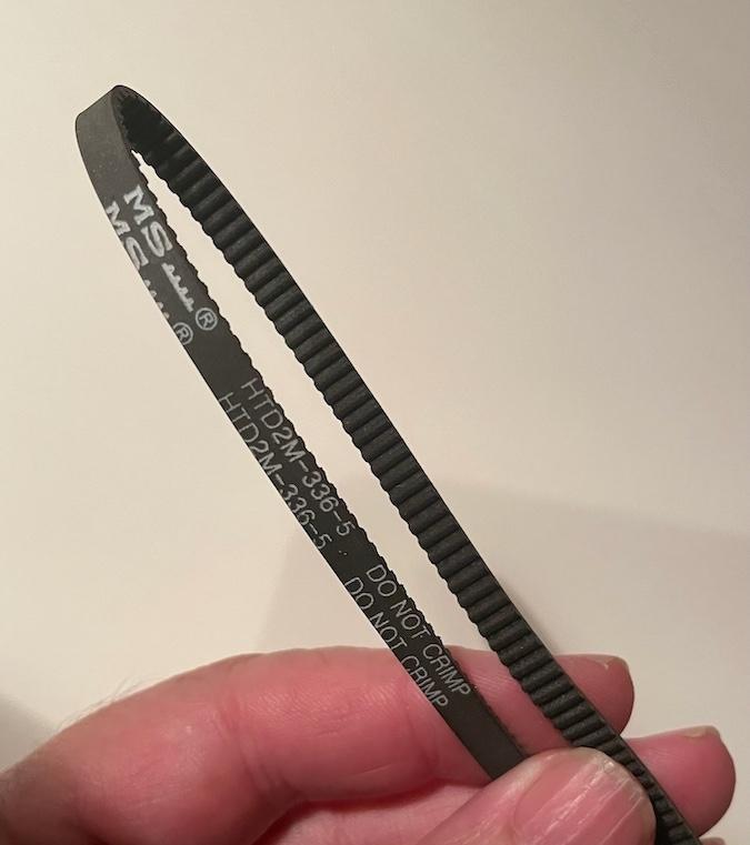 I tear apart dead electronic devices before I toss them out, to see what can be repurposed inside 'em as model car parts. I forget what kind of ink jet printer / pen plotter this particular one came out of, it's too big to be a toothed belt for 24th / 25th scale dragsters and likely too small for 1/8th scale. But any kind of printer that has a moving printer head may have real rubber toothed belts or smooth v-groove ones that could be the right size. Companies probably sell replacement belts for such printers, too.