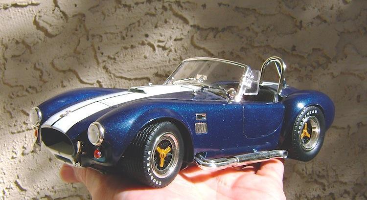 Since someone else wanted to see a photo, I thought I'd pop this one in, a Shelby Collectibles 427 that I was able to snag a couple of years ago at a swap meet for just $20. Not bad overall to my otherwise untrained eye, but the model builder in me wants to fix the reflectors for the turn signals and taillights and tidy up other details. I'd prefer silver colored wheel spinners, and much better looking tires if such a thing was available. Bright sunlight makes the metallic paint look like fuzz specks are all over the surfaces in this photo, but it is really much more eye-popping in person.