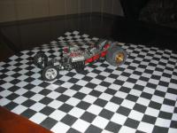 Mike: I'm a huge Mustang fan too. I had a '93 hatch that went 10.80 @ 128 with a Pdyne supercharger, SVO Y heads, X cam, shorties and an Edelbrock intake. Stock 5 speed too! Anyway, I have a really junk camera and that's the best I can get right now. All my builds are waiting for me to practice on the new paint booth I just got, then I'll try to stay as close to 1:1 on the paint as possible. I have a friend who shot really good pics of my 1st build in 45 years, the Frank Iaconia t-bird pro stock. Let me see if I can load a couple here: