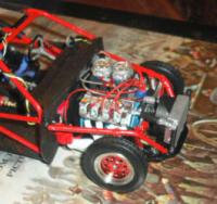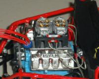15. great ideas Aaron. Every little thing helps an amateur like me come a step closer to getting "similar" results with less cost. I like Ron from RB Motion, but I haven't tried any fitment yet with Teds braided wire. I want detail, but not at a cash strapping cost. My 1st two builds came from silver painted hobby twine (.025) for fuel line and I painted the fittings red/blue LOL! I haven't looked at DM's offererings yet, but it sounds like you just buy an entire combo fitting (the red/blue part), then prep if resin, cut and manuver however you need with solder or wire. I dig it. I can never go as detailed as you are with the P.E. rear brake parts, etc., but that's not my goal. I'm really just doing this for my own enjoyment and not for contests, but work like yours is like looking at a Nat'l Geographic. It's a work of beauty by blessed hands. Keep building bro. You inspire the rest of us! Don't laugh, but here's some pics of my 2nd build engine build with some additional detailing attempts, I don't know why, but even Photoshop can't compensate for my crummy Casio camera. I pray for a tax return of some kind.... Thanks for looking, Aaron!