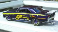 23. A little stale on this topic, but my brain was wandering still waiting for SLIXX mini-sheets ordered a month or more ago... While I like the idea of spark plugs and I even see where the hollow section of a hypo would assist in the oil dipstick, I don't know and don't care to know where to get "sharps" from. I was in my hobby store the other day looking at the styrene rack and they had plastic rods even smaller than this diameter and increasing. Since the spark plug wouldn't be showing, my solution would be use a small dremel to open up a spark plug hole and glue same size rod pieces as the hypo above. Then, using the smallest appropriate diameter black shrink wrap you can find, mate up the plug wire with the rod end as it exits the head hole. Use a hair dryer and presto! Instant plug insulator and connector to the plug wire. Me thinks this might also give a very 1:1 lifelike effect. For enines like my Glidden '86 prostock t-bird, the huge heads already have a small hollow plug-like tube molded coming out of the head. A little more tenuous, but same technique. There's gotta be a lot more uses for that shrink wrap the pro's know that I haven't even thought of, like padding appearance for roll cages (just make a cut down the sleeve to fit around the bar's length and turn it downwards so it can't be readily seen). Can you tell I'm burned out from working on my current AMT '66 Nova project? Technically my 1st build, I dumped so much hand-made and donor detail into it and left the body for last. Being my first shoot and using rattle cans, it took 4 bodies to get a good job. And yes, I know about the purple pond. It just never took the paint off fast or well enough. Lessons learned are like bridges burned I hope!