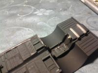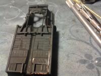 So after looking everything over I realized there was no fuel tank so I scratch built one from some extra flashing and sprew from parts tree. Following are pictures of the primered chassis with no fuel tank, unpainted/unsanded fuel tank, and the flashing and sprew used to make the tank