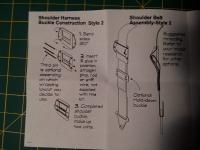 Hi guys, As some of you may know, I've been working on a custom 2001 Subaru Impreza WRC for a family member. Not only did I pick up the P/E kit for this Tamiya model (#24240), but I also purchased the P/E seat harness / seat-belt kit (both kits are from Scale Motorsport). I've opted to go the seat belt route even though I'm making this a stock / rally mash up. My problem is the buckles. I have three options, a shoulder harness, a shoulder belt, or a racing harness assembly. I was going to go the with the shoulder belt assembly but I've hit a wall. The assembly of the buckle calls for 3 pins to be inserted into the holes on the buckle. Of course, the pins aren't included and they don't document the gauge required. I've attached a few pictures for reference. In the first image, you can see the 3 holes on each side of the buckle. That's what I have to have the pins glue to, then the idea is you thread the belt through that. The 2nd two images are the instructions, and I'm wondering if I shouldn't do the shoulder harness assembly style one instead of style two which requires the 3 pins. Let's add to the mix that this is my first full P/E project. So I'm probably going to make mistakes, and style one looks easier to do. My question is, which style should I choose of the two? And if the answer is the easier one, just out of curiosity, how would some of you address the pins? I tried finding the smallest gauge wire I could at my local hobby shop but it was still a tad too big. Thanks for taking the time to read this, and I am thankful for any input! - schwack