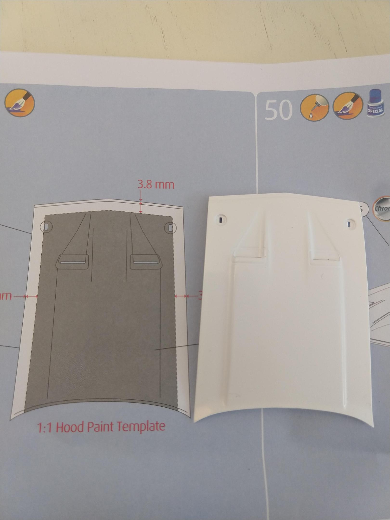 4. How are you folks painting the hood on the Revell Boss 351? I thought I could cut out the template from the instruction sheet but it is smaller than the hood. Should I just measure 3.8 mm from the edge and mask? What are guys doing? Thanks