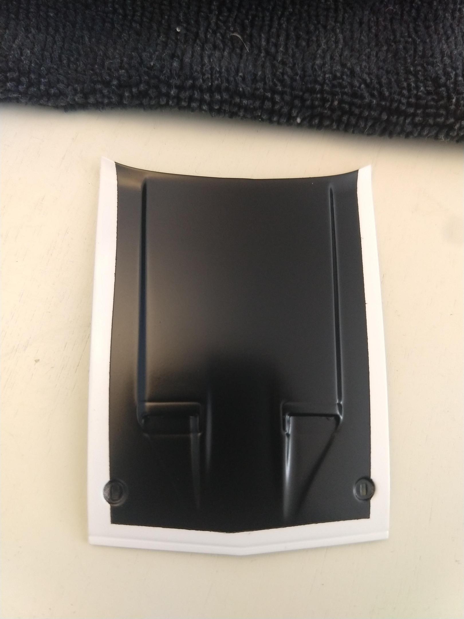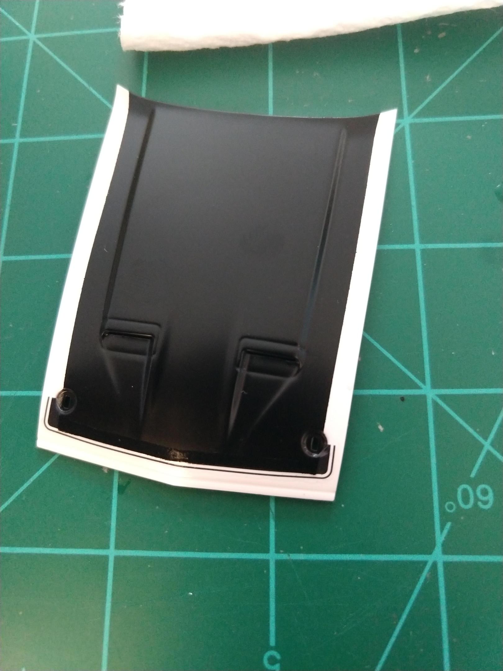 1. So this is how I addressed it with a tip from @kitbuilderchris on IG. I measured 3.8 mm from the edge of the hood and masked the edges. Then sprayed Tamiya TS-29 semi gloss black. This is where I used Chris's idea and cut the decal into 3 parts. I applied the front piece first. Then the sides. Not perfect but I'm moving on. In retrospect, I could have sanded the paint edges a bit because it does show under the decal. Also, the decal has a bit more sheen than the paint. I considered spraying semi gloss clear but decided not to. As they say, It is what it is. Thanks