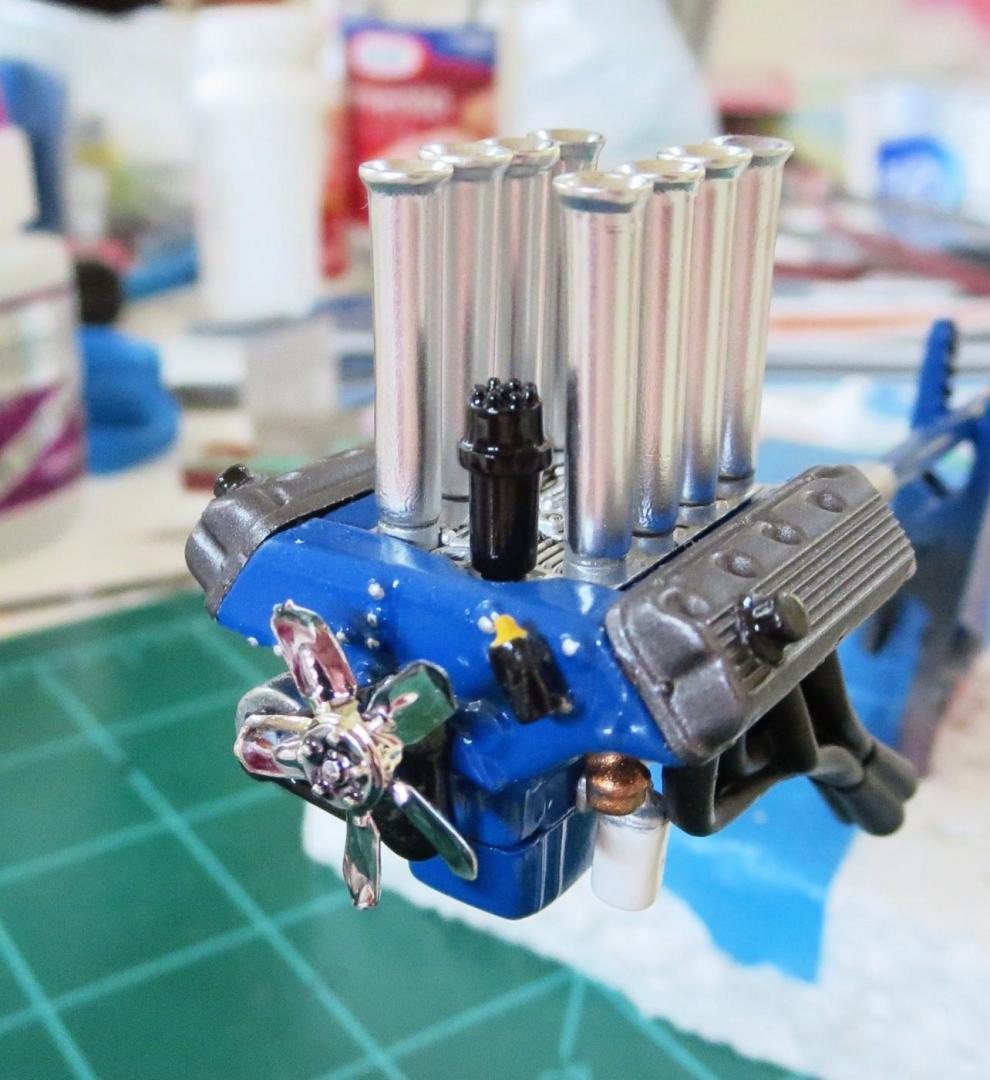 Ace, that sounds ace, I'll try the mask thing, thanks. Thanks Ray, can't wait to see the big Ford. Carl! I can't believe I've inspired you to want to build a kit, yes! Have you built one of these before? Andy, they are the kit stacks, I de-chromed them and did a lot of sanding/prepping and then shot them with Alclad chrome, out of the spray can. The engine has been uninstalled due to forces beyond my control, stay tuned! -