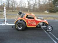 After doing a mock up of the newly released MPC Bounty Hunter Connie Kalitta Mustang F/C, the front axle seems a bit too wide. When you drop the body down on the chassis, the front tires protrude way too much. This is a different front axle than the one in the Blue Max kit. Has anyone experienced this?