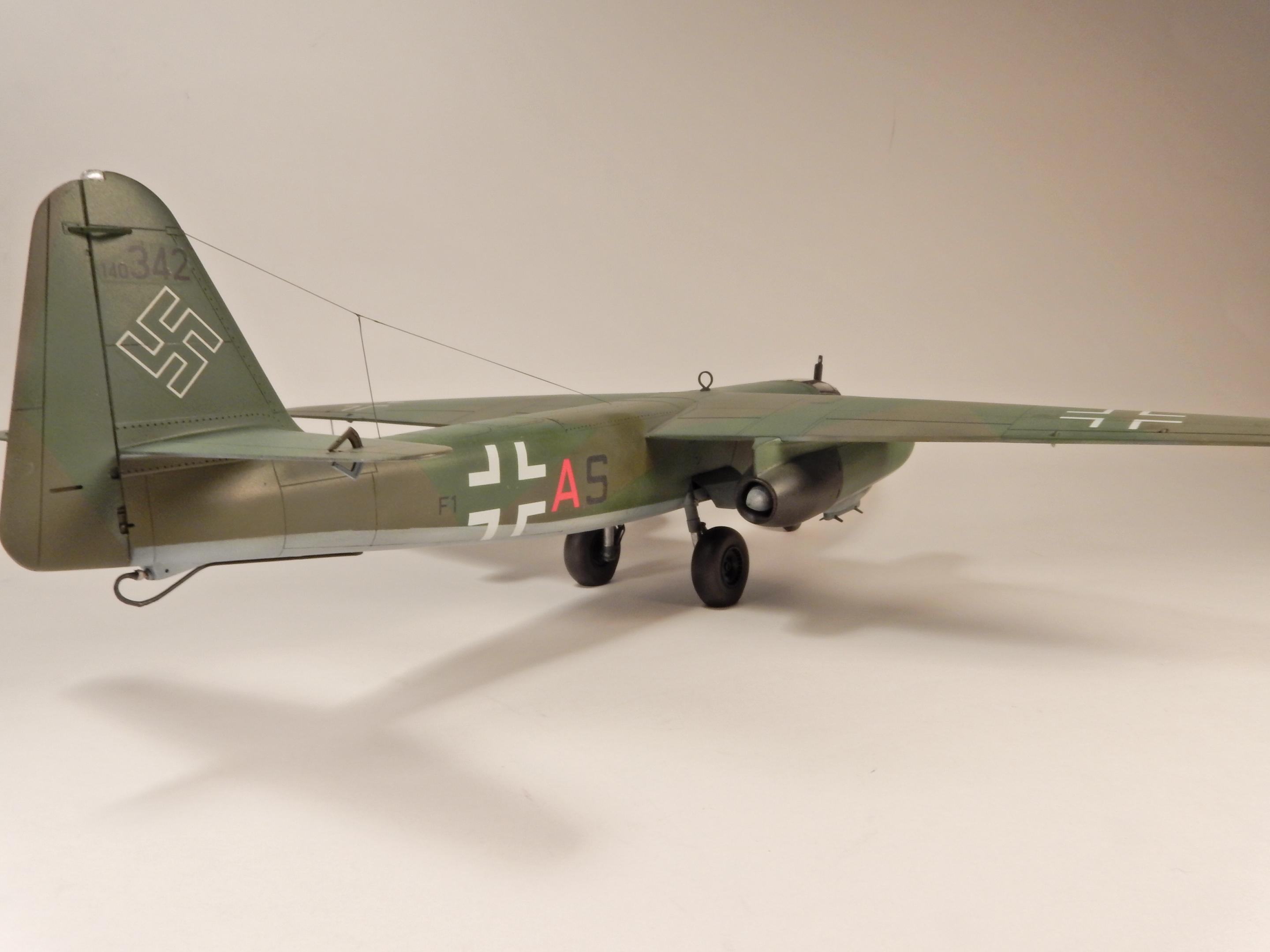 I do this all the time and that was a great tute Steven. On a note about antenna wires/ cables on aircraft. After the ends are attached to the fuselage and rudder, the "antenna" has a tendency to sag. Heat a metal rod using a stove burner or flame from a small torch and after removing from a flame place the metal rod under the lowest point in the sag. It only takes a second or so and the "antenna" will start to sag more. When you see this happening quickly remove the rod and the antenna / stretched sprue pulls taught. Dangdest then you ever saw but it works. I used this method on my Arado 234. The vertical antenna attachment was glued in place after the longer piece was installed. I just attached the second piece at the fuselage and put a jig in place to lower the stretched main antenna down to the vertical one and used super glue to adhere both together. Had a little trouble uploading pictures this morning and when I did, the only way I could get this to post was with this too large of a photo. Sorry 'bout the size of this.