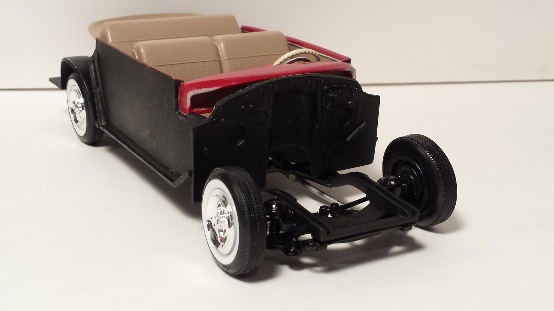 Sorry it's been so long, I haven't been getting much bench time in, but I got a few things done (or mostly done). Passenger side door panel is finished and installed. The driver's side is getting touchups and not having it installed makes for a better pic. Just don't zoom in too far - these high res. pics make details not visible to the naked eye look horrible. The dash is almost finished. I just have to figure out how I'm going to do a trim ring around the clock. The gauges are from Best Model Car Parts (I have the clock face too). Once the interior is all assembled I can do a quick mock up to check the front ride height (choice of front axel spindles in the kit - can't remember which I used previously as I pulled the others out of the parts box and got them mixed up) and then get the chassis all buttoned up. Mark.