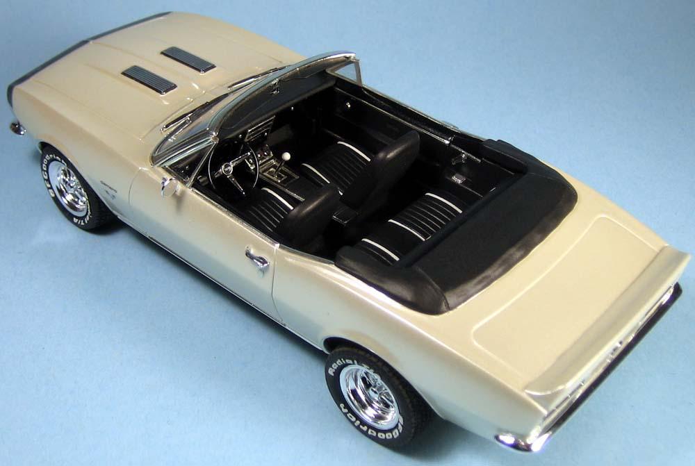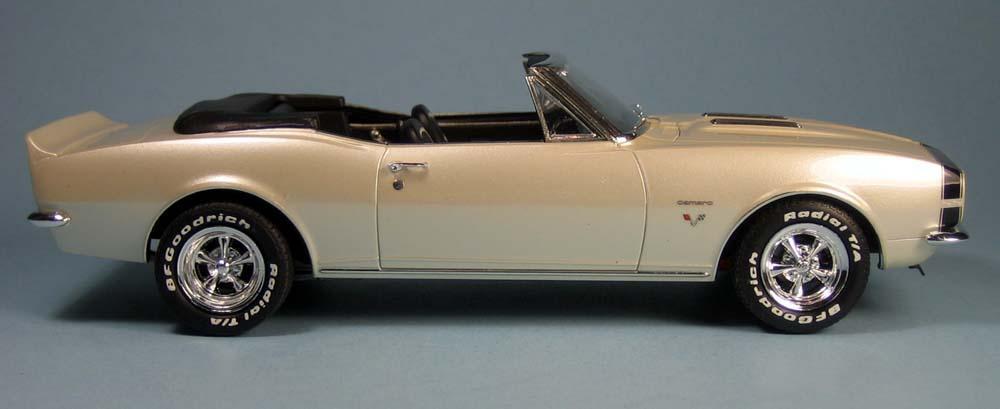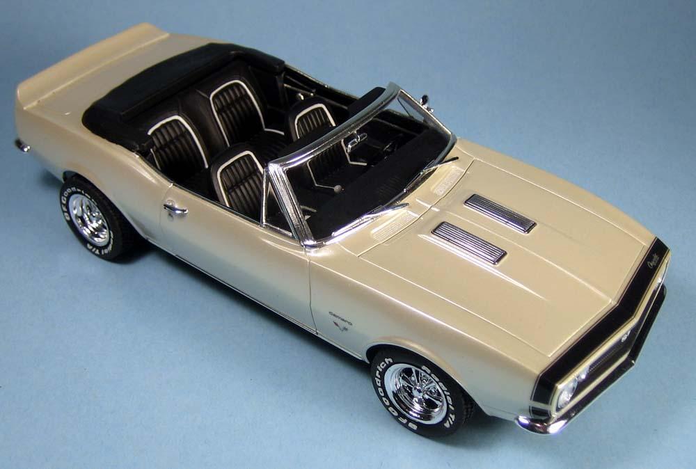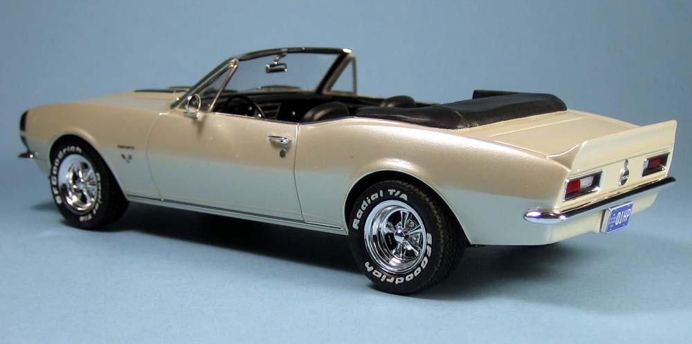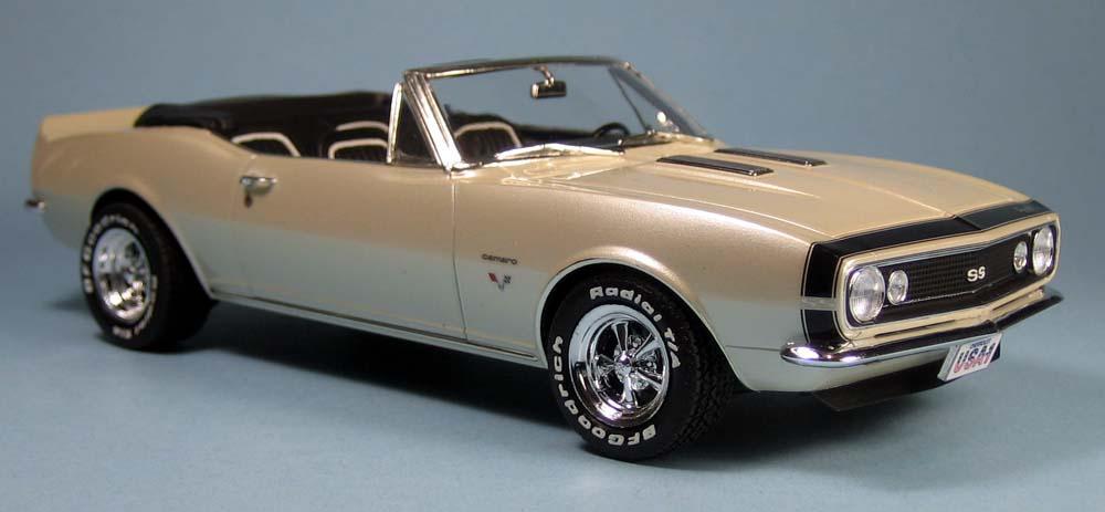 I finally finished my latest project, a 1967 Camaro SS 350 convertible built for my daughter's boss and good friend of the family. He owns the actual car and my daughter wanted to surprise him with a scale model of his car for Christmas. She presented it to him this past Monday and he was bowled over! Good to know it is in a good home where it will be appreciated. It is basically the Revell 1967 Camaro SS kit combined with the rear deck and interior tub and seats from the Revell 1969 Camaro SS Convertible. I started this one back during the summer and if it weren't for so many of my fellow JSMCC club members donating wheels, tires, engines, valve covers, etc. it might not have ever gotten finished! Thanks guys!