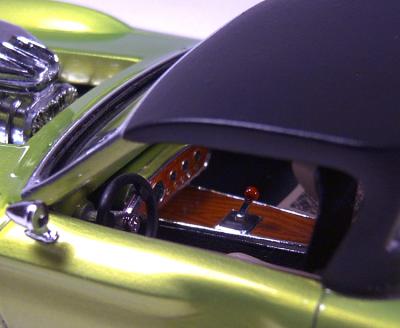 Thanks! The gauges are hand painted. I primed the dash with Tamiya flat white primer. After giving it ample time to dry I did a Testors flat black wash. When that was good and dry, I took a tiny piece of 600 Wet or Dry sandpaper and lightly sanded the high spots until the white base coat showed through nicely. I did some touch up with the flat black and then when it had time to dry I cut tiny circles of masking tape and masked of the bezels. I then airbrushed on the Brown acrylic wood color. That received a dark brown wash as well to give it a more "wood" look. When all of this was done and the gauge masks were removed I lightly sanded the bezels to bring out the white edges, which from a distance in in photos look like chrome. It's a lot of work but I think the results speak for themselves!