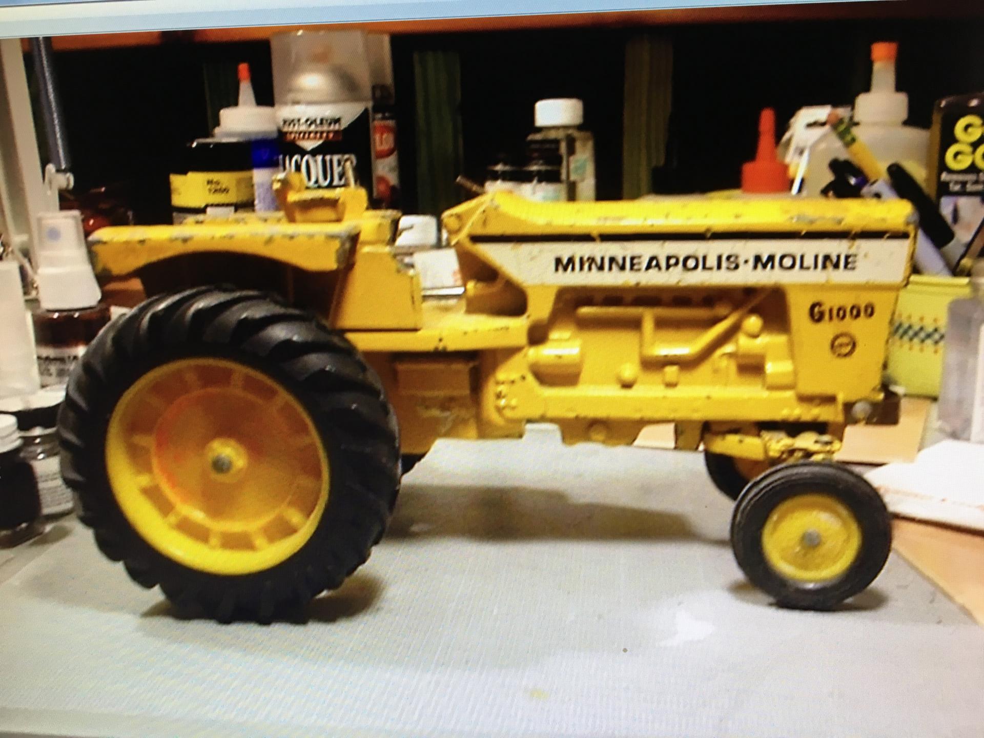13. I built this Minneapolis Moline G 1000 FWA for a friend of mine a few years ago. Not much scratch building on this. Mostly in the steering and tie rods. Th FWA parts and tires and rims are from an aftermarket farm toy dealer. The FWA parts all had to be drilled and pinned for assembly.