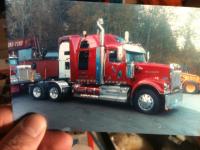 I scratch build these 1/43 scale Western Stars based on the trucks I have actually driven. The lumber hauler runs on Vancouver Island and the produce refer unit I ran from Vancouver Island to Nevada, Arizona, California and all points in between. To achieve the accurate finished model I was wanting I first took digital photos of the real trucks from every angle then scaled all the photos to 1/43rd. Then I cut out all the parts from the photos, doors, fenders, hood, grill, etc. and glued them over foam core bulkheads that were mounted on a plastic chassis and wheels. The finished model is an exact photographic replica of the real truck
