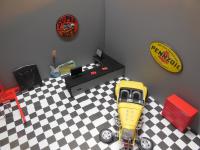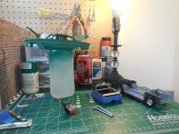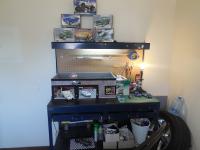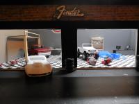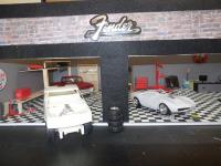 I'm Stephen 24 starting building models about 2 months ago about a year ago is when i really started one got messed up and the other never really finished but now i have started again and love it pic of my work space and my garage diorama that i build about a month ago and call it the fender shop still not done with it