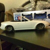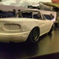 Having built a few stanced cars in real life I figured I'd try to build a model miata. Tamiya kit and fujimi wheels