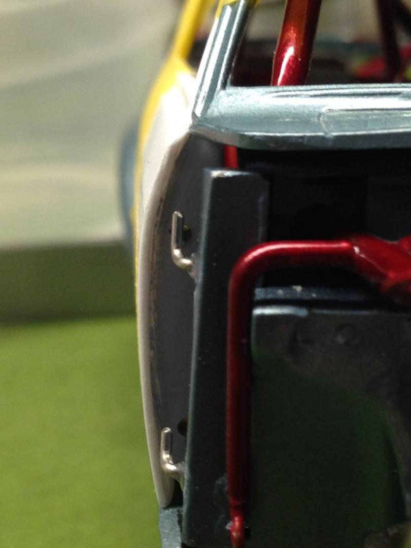 Thanks Steve,for your comments,and yes,i could had done it more easy if i had choose a little bit bigger car. But the challenge was to do this contrast of "small and big" in the same composition. Time to update some pictures. This is the doors,as you could see,i have named the car "Sweet Pain",and that is a name that i will associate to this build. Because sometimes it was so tricky to get parts together,so i was almost giving up the build. BUT.... when the tricky parts was mounted,the fun and joy came back. I have paint the window frame on the doors with Alclad chrome, it was to fragile to do the bare metal foil. I have done also a fuel filter and a fuel pump on my lathe that will mount in the trunk area where the fuel cell will be mounted. With some paint and decals and some brackets and nuts the details will come alive. -