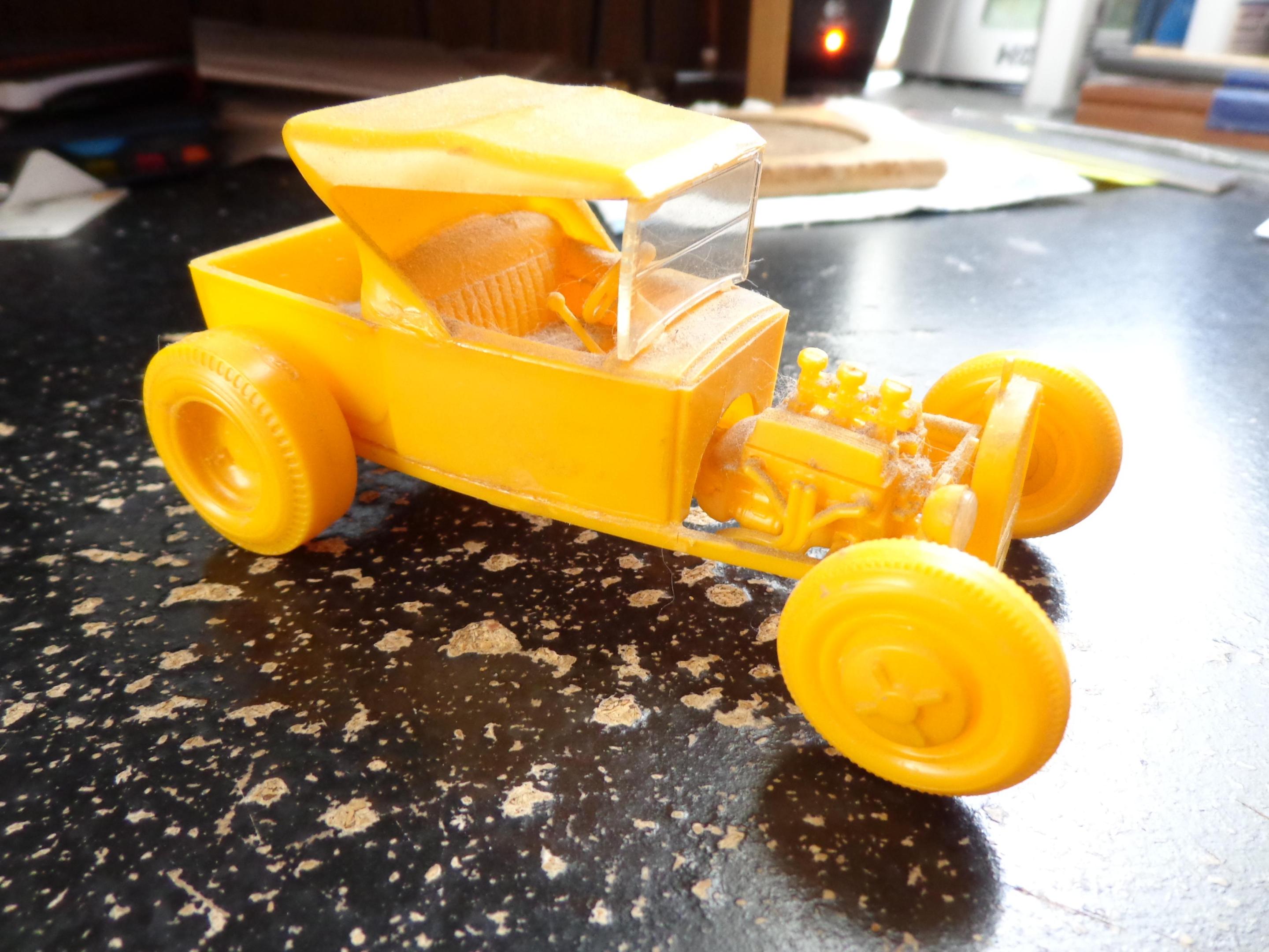 Here's my earliest glue kit. Not sure how old I was but it was in the mid 70s when it was built. It's even complete with 40 years worth of dust! It's an old Monogram kit. I'm sure it was the reissue done in 75. I bought another one from ebay about 7 years ago to build up now and display them together. It was actually the 1961 issue of the kit. Maybe I'll get this one out after my current build is done.