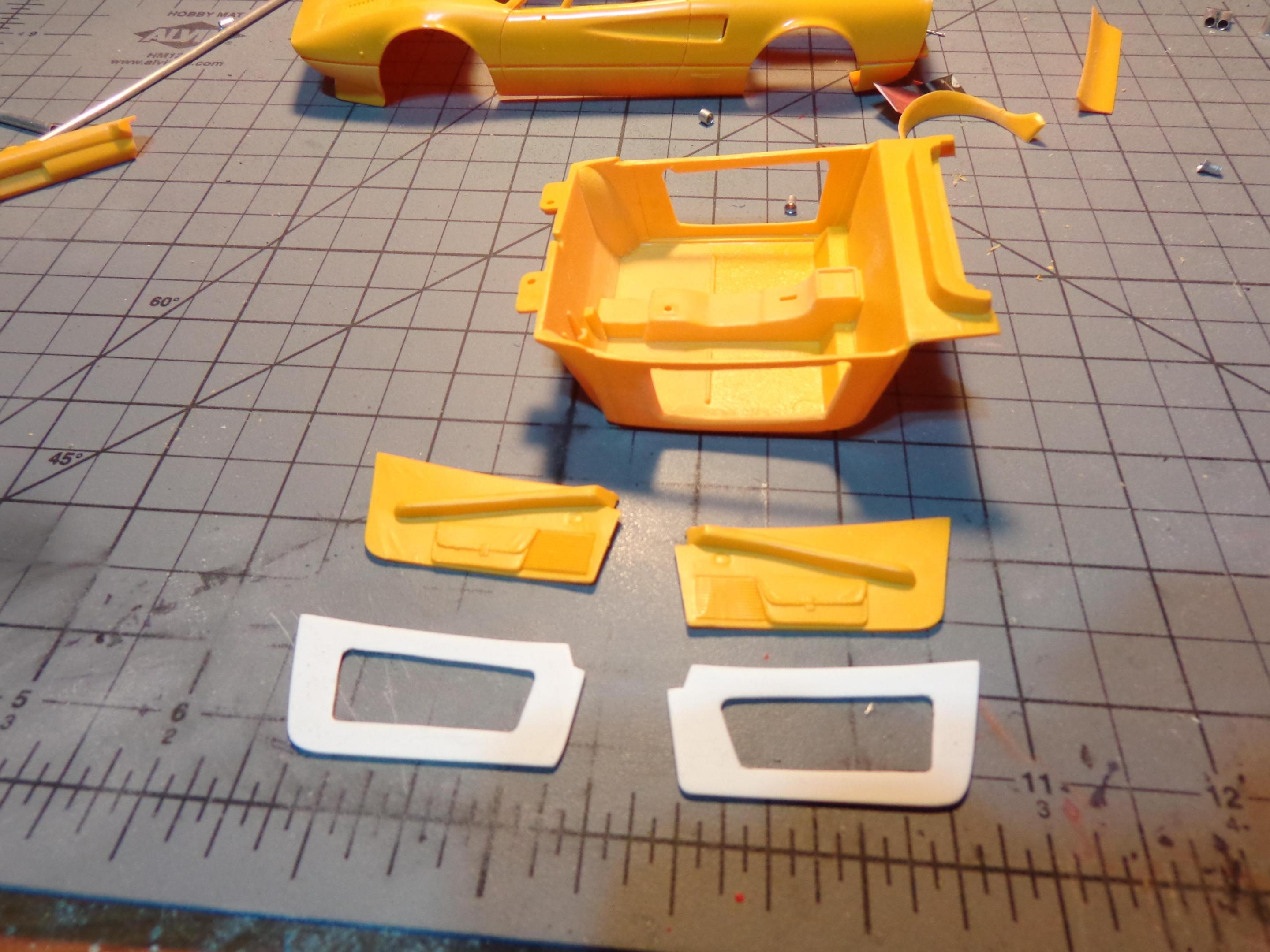 Since the "My Science Project" GTO is basically done (mirrors and license plates yet), I figured it's time for the next one to try to keep the ball rolling. A simpler kit this time so that maybe I won't get stalled out by putting too many details into it (although I do have plans for some enhancements). Haven't completely decided on a color yet but I'm thinking of a 2 tone red upper, black lower with black fender flares. Very similar to the box top but just with red instead of yellow. (I know, another red Ferrari) I did already use aluminum tubing to make the exhaust tips so they have some dimension and depth. I have some shaping on the body to do. The rear bumper is too thick on one side. I just know that I'm going to want to simplify the interior to resemble more of a race car and I'm not sure if I'm going to be happy with just the single roll bar hoop in the kit. So, I'm not sure how much I'm going to be able to reign myself in to not going overboard.