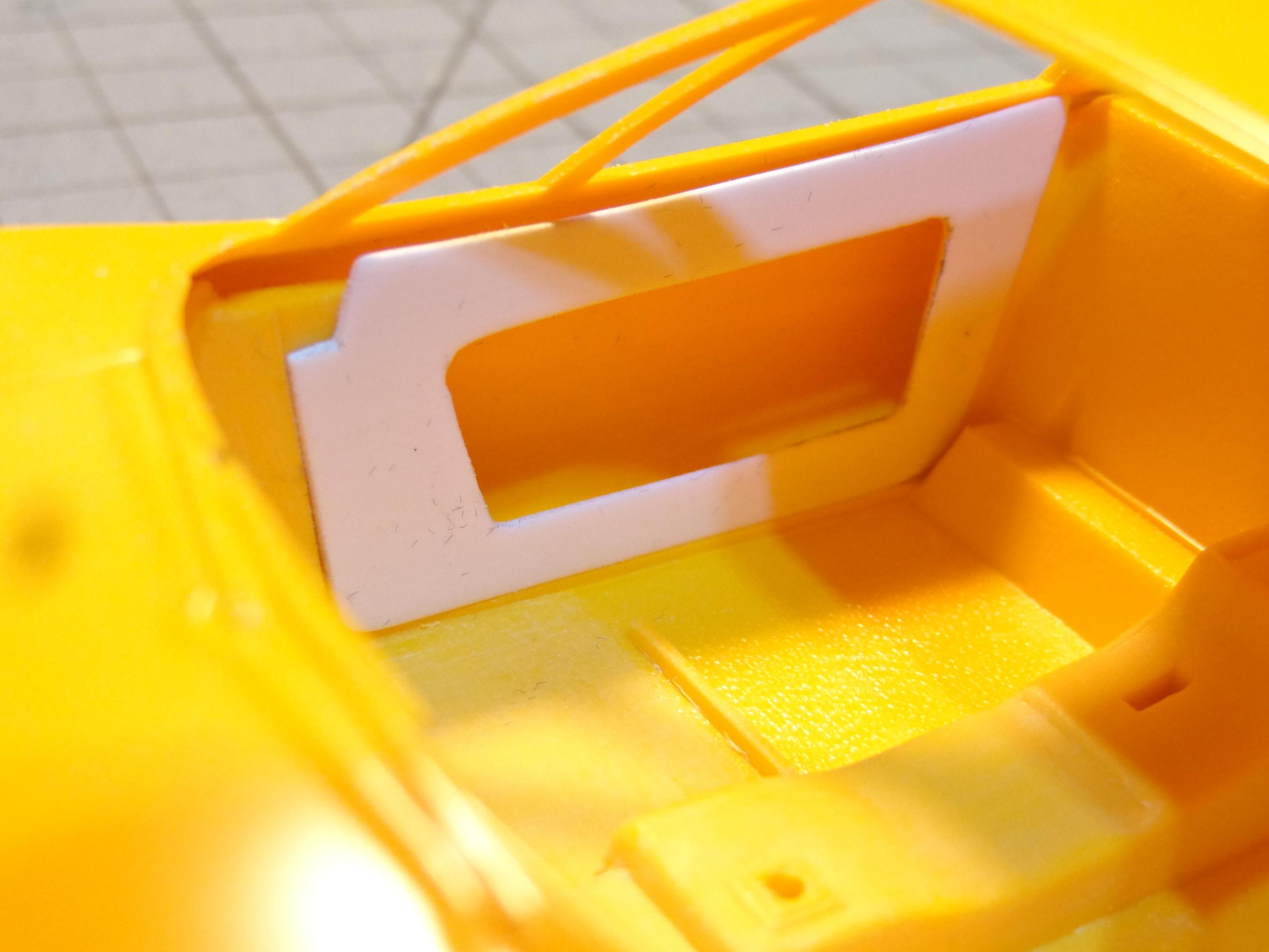 So, in looking at pictures of racing Ferrari 308s, I knew that the stock looking interior wasn't going to cut it. I had to clean up (smooth out) the center console and the floor. The stock door panels had to go too. I thought of cutting, filing and sanding them down smooth but decided it would be easier to make new panels. The thought of what kind of handle to use and how to close the door with a pull of some sort made me look even more into the different designs of interiors. One that I really like is a cut out door panel leaving access to the inside of the door. I would imagine that the driver just grabs the door panel to close the door also. So that's what I decided to do. After cutting out the door panels I cut out the center of them for the look I wanted. In doing that I also had to cut out the area on the tub where the door panels attached to create the hole looking into the inside of the door skin. Next I need to work on some kind of roll bar that works with the kit supplied hoop and then try to find a racing seat. Not sure if I want to go with 2 seats or just one. -