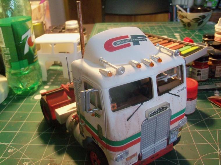Yeah for sure. The headlights are from the AMT 352 Peterbilt kit. This one comes with the square lights, didn't care for them so off they went. This also takes it back to the one my dad drove. -