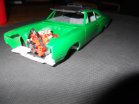 Well I have been busy this week and didn't have much time to play with my model. I did get the engine most of the way done. I am going to work on the chassis next I think. the Body has not been sanded or polished yet, I am waiting until I can afford to go to the local hobby shop to pick up a few things like BMF and flocking.