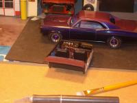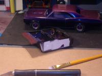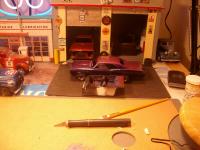 Thanks for the kind words. Yes Mike you are correct, I do have a lot of projects going...I tell myself I need to stay busy while paint or glue dries....This was advice from the guy at the Hobby Store....Looking back I wonder if he said that to sell me more cars. Bruce and Kevin ask about my weathering. For "Road Grime" I use crafters stain. My Wife paints those plaster ornaments the "Antiquing Stain" Dry's flat and can be wiped off when wet so its workable. Bruce you are right about the Tamiya products...and acrylics can be thinned to make some good stains, grime, and washes. I try different things...That's why this such a great hobby we are constantly learning....I learn a lot from the "Builders" on this site. One of the guys Suggested "Sharpie" style markers, they work good, but dry fast...keep a sheet of paper handy because the ink stops flowing when you are coloring smooth surfaces...Writing on the paper seems to "Re prime" the Sharpie and you can continue on...I have also experimented with "Stamping" and "Calligraphy" inks some of these remain work able you can use your paint brush to work the ink into tight places, inks tend to remain "Translucent" so you can get some "Kool" effects over metallic surfaces...Thanks again for looking and your comments....As for the cars in the back ground some of them are builds that I have done in the past...like to enjoy them while I'm building.....Cars make a good back drop for Pics. of Project Cars.