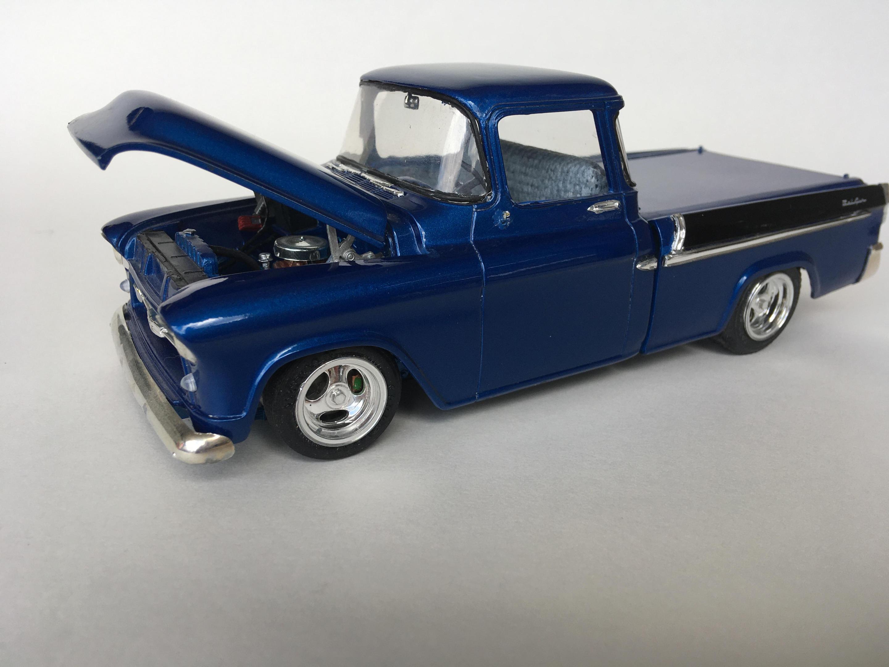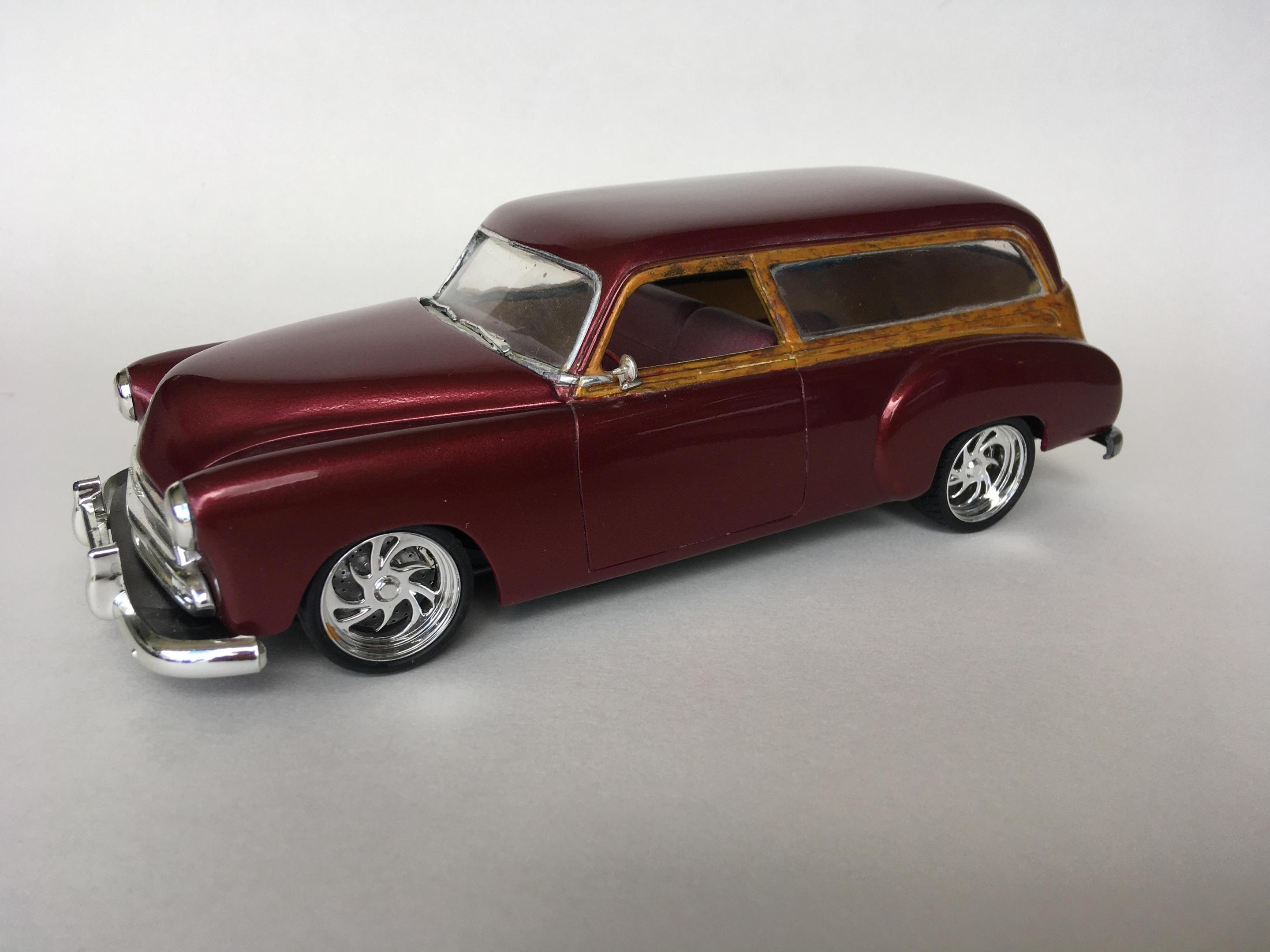 15. This build is a replication of the 1/1 that is owned by a good friend and will be gifted to him. I started out with a Jimmy Flintstone 66 Nova Sedan Delivery. I removed the greenhouse/ and replaced with a narrowed roof section from The AMT 65 El Camino and made up the bed from Evergreen stock. Seat narrowed from the AMT 70 Impala with new upholstery pattern fashioned with Tamiya puttty and thin wire. Door panels made up of Evergreen stock and dash modified to replace OEM instrument cluster with aftermarket round dials. Small block and chassis from the AMT 67 Nova with the GM auto from the Beatnik Bandit II kit. Air cleaner scratch built from scribed Evergreen sheet with home made decal to replicate filter mesh. New inner fenders fabricated with chassis reinforcement tubes on each side. All major wiring and plumbing added. Front IRS donated also by the Beatnik Bandit II. My buddy Gerry sourced the 3d printed wheels and tires from Iceman for me. They're not exact to the 1/1 but pretty close. Color is Porsche Gaurds Red from Splash with 2k clear from Splash.