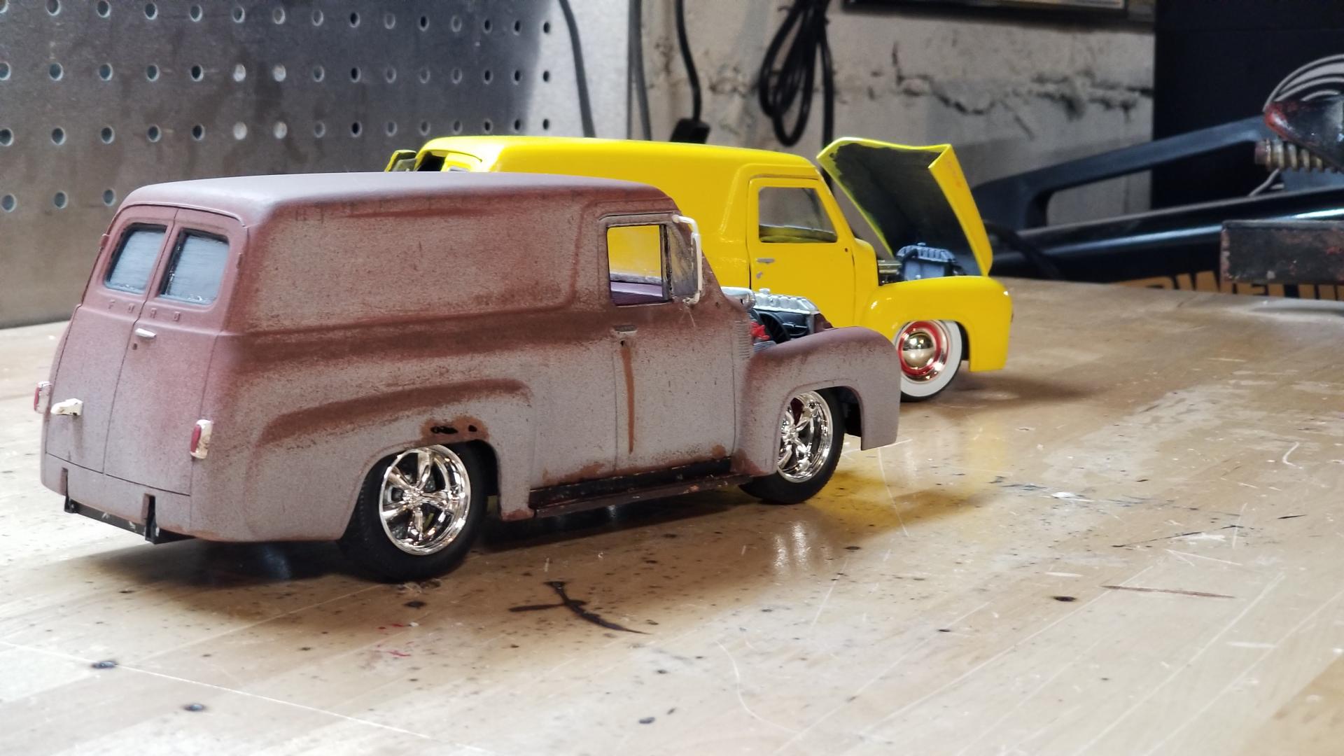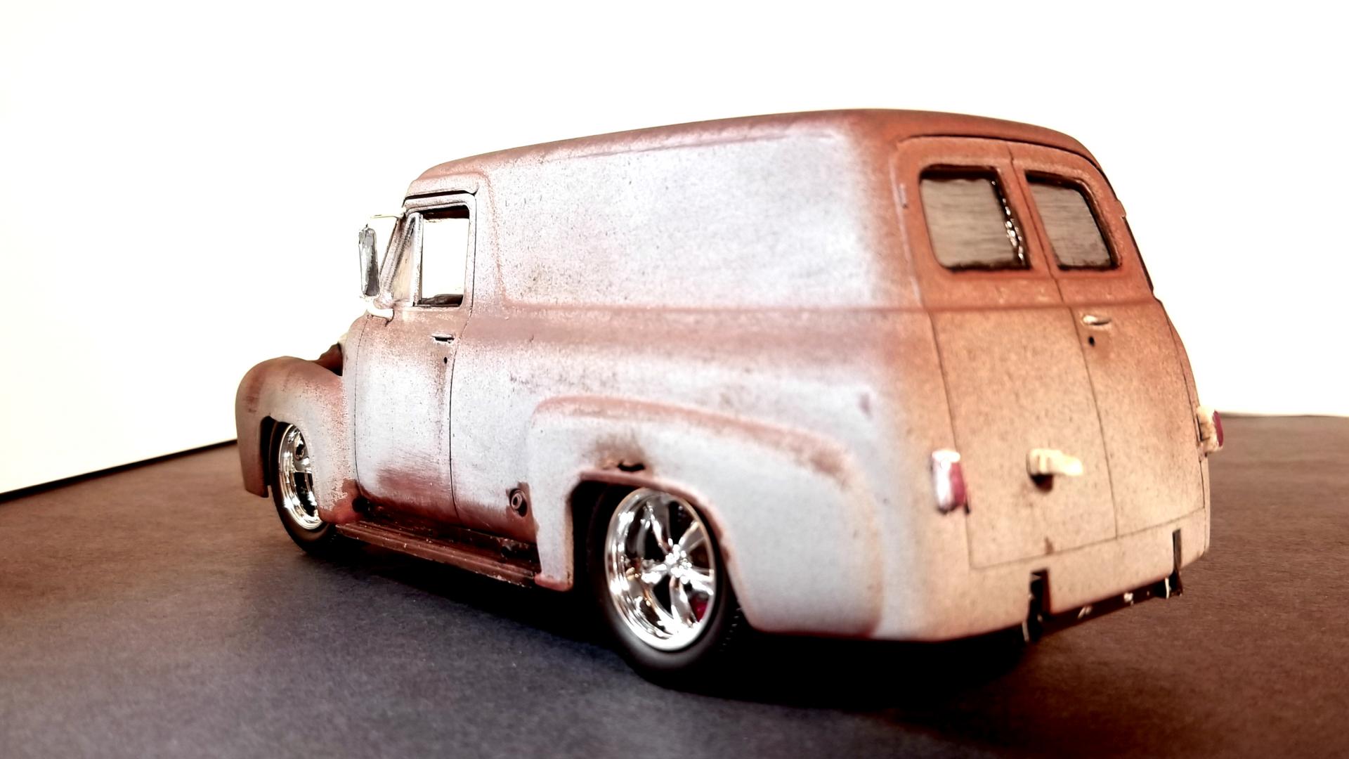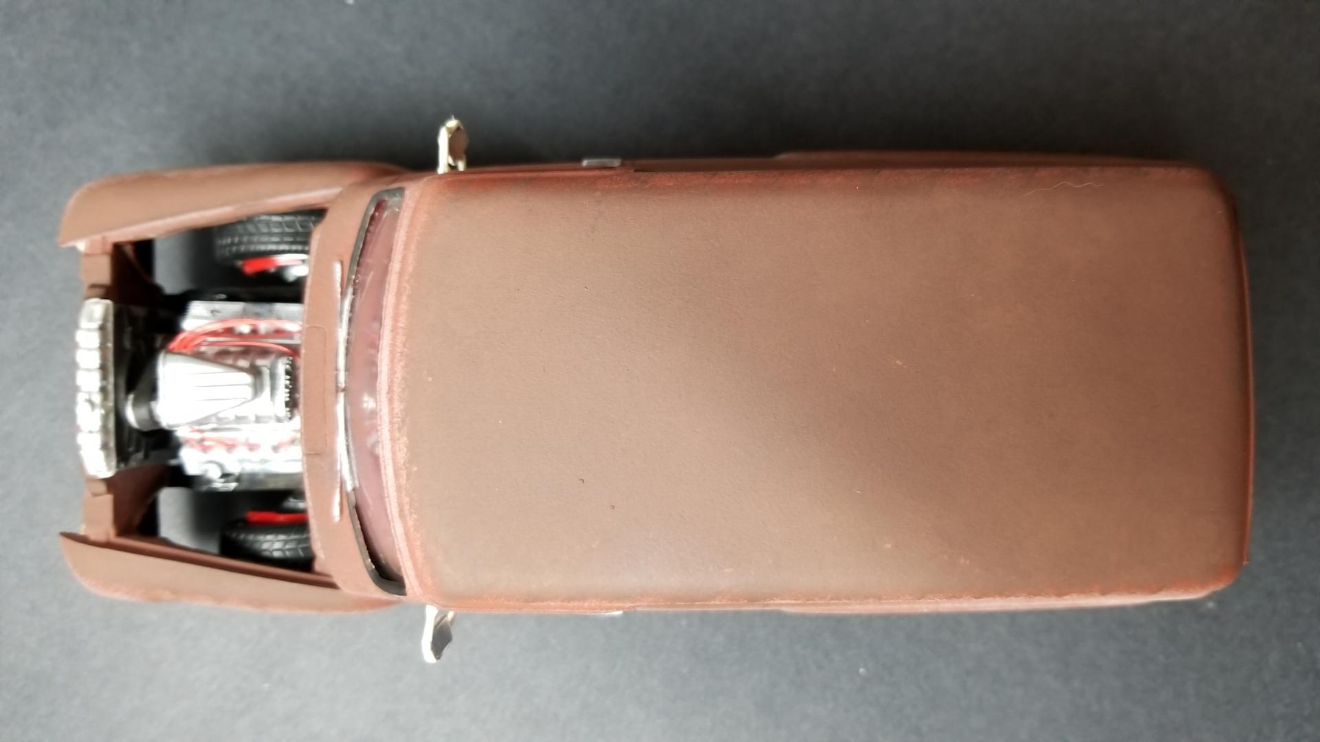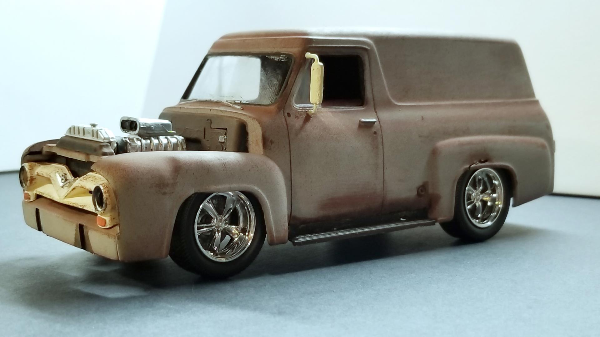 It started out life as the Revell Harley Davidson kit.  The look I was going for was an old body pulled out of the woods, new engine, suspension, and wheels and tires added.