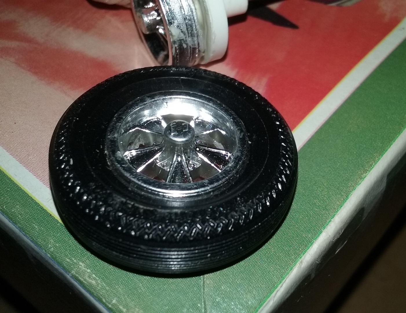 OK, this is a little weird: http://www.collectormodel.com/round2-models/4174-coming-off-the-shelf-what-a-gasser/#sthash.w2hdEbbh.dpbs Sounds like the "bonus" pad printed redlines won't work with either of the wheel types included with the kit? (or maybe they're too wide to fit an out of the box build?) -