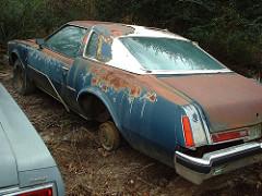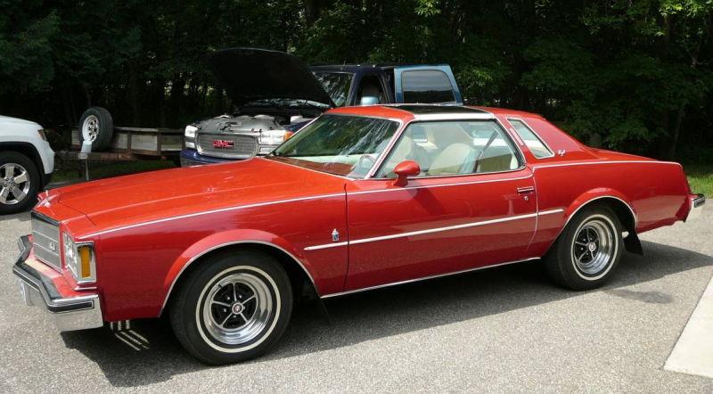 Chalk me up as another fan of all the various 73-77 A-bodies. Lots of interesting variations and changes between model years for all the different divisions. Buick actually did offer the small "opera-style" quarter windows with the semi fastback roofline, on the Century Special Landau coupe. Interesting factoid is that it seems like it was a last-minute variation. Buick rough-welded plugs in the large quarter window openings to convert these cars to the small windows, then just covered them with the Landau vinyl half top. The interior also used the plastic surround for the large quarter windows, with a separate vinyl filler to convert it to the small window style. Here's a pic of a junked one with the top peeled, showing the rough body work: : This also happens to be the exact same method Chevy used when they first offered the small quarter windows on the 1974 Malibu Classic and Laguna Type S-3. Full vinyl top was mandatory until midyear, to cover up the rough body work on the window plugs. I agree that the Regals were quite striking in that metallic red. A kid in my school inherited his grandpa's Regal Landau coupe, red with a white half top, Buick 350, and road wheels, absolutely mint condition, which you just didn't see anymore in the Chicago area by the early 1990s. Of course, he daily drove it through the winters like any other car, so you can imagine what it looked like after a few years. I personally think these Regals looked the best with the S/R package and T-tops like this one: These cars still used the same console and horseshoe shifter from the 1970 - 1972 Skylark GS. You could also still get the same 3-spoke sport steering wheel from the earlier generation cars, so even though the performance was gone by 1977, the interior still had some direct ties to the earlier Buick muscle cars.