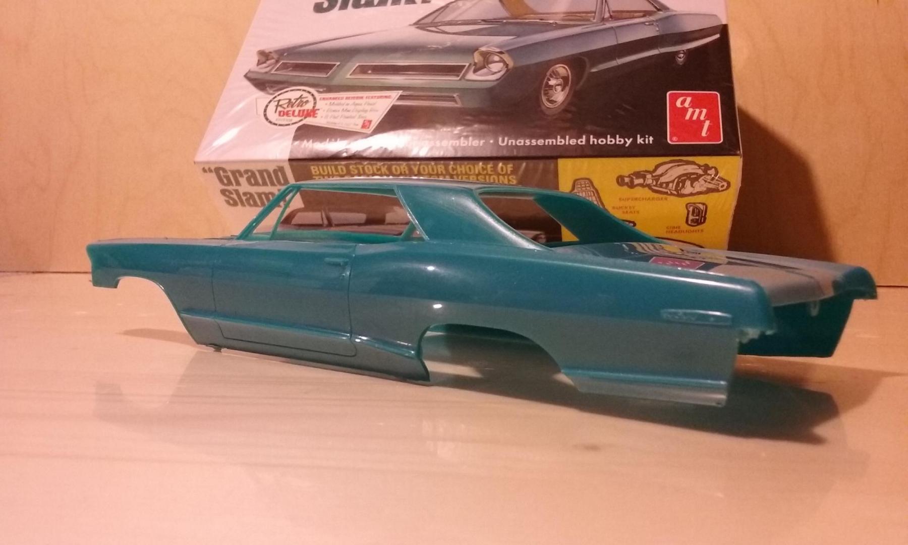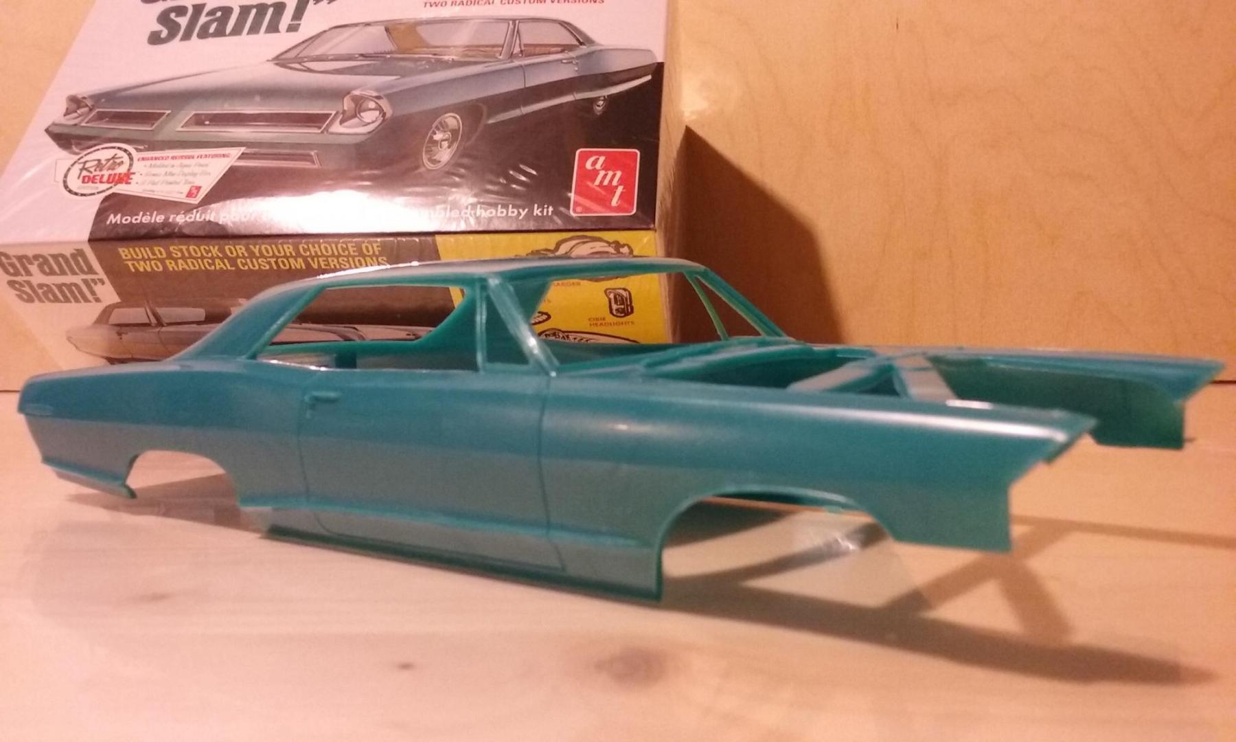 Stopped at my LHS after work. Had a bunch of new Round 2 stuff, plus they finally had the Moebius Belevedere sedan. Was really looking forward to getting that one, but decided I'd better pass considering the panel line issues and the widespread warpage people are finding in that one. Decided to come home with the AMT '65 Grand Prix, since that's one I'd missed during previous reissues.