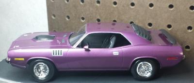 The body paint is a green metal flake by Testors. It was a pain to mix to the right ratio. I nailed the purple metal flake on my hemi cuda though. This is only my second build in 12 years. This was the first I did a couple months ago. -
