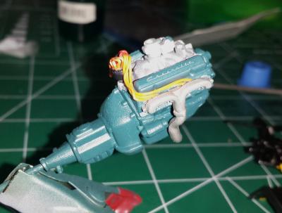 Going to throw some pictures up tomorrow, painted and detailed the chassis with suspensions and paint shock housings yellow and shafts chrome silver. Wired my distributor cap I got from crazyjim. Think it'll hold. Put crazy glue in them put the 8 wires around. Letting it dry. Also drilled holes for the wires beneath the valve covers where the manifolds go. Only thing that concerns me is the wires being in the way of the manifolds, so might have to do some trimming. Stay tuned guys. Pictures coming tomorrow