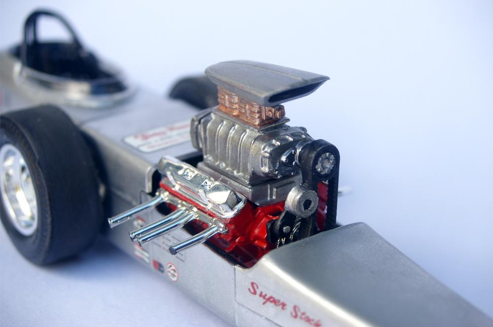 Buick GSX ready for the strip! Engine and rear tyres from the Tony Nancy double dragster kit. Wiring details added in the engine bay. Used bare metal foil around the windscreen (first time using BMF). Comments and constructive criticism welcome.