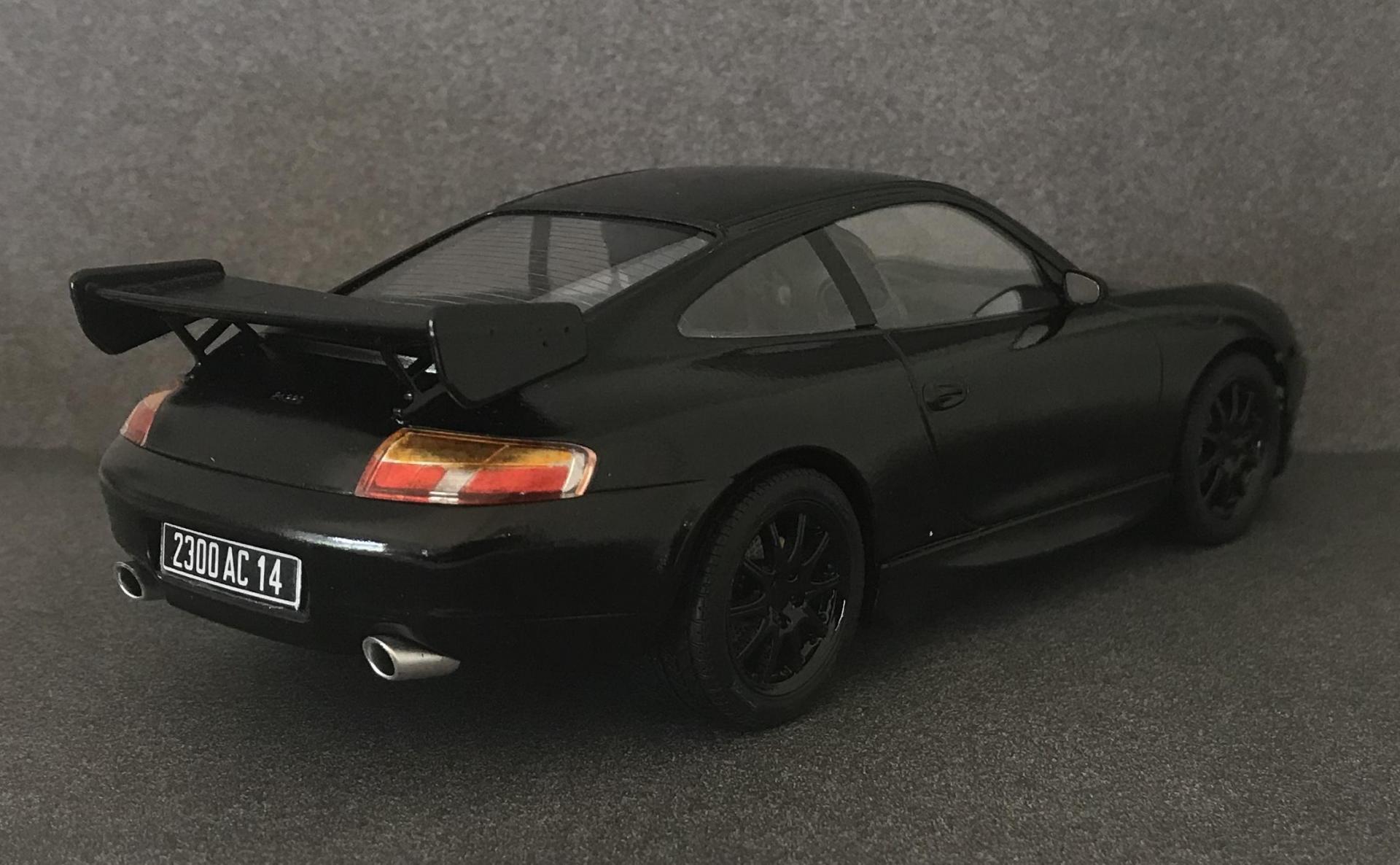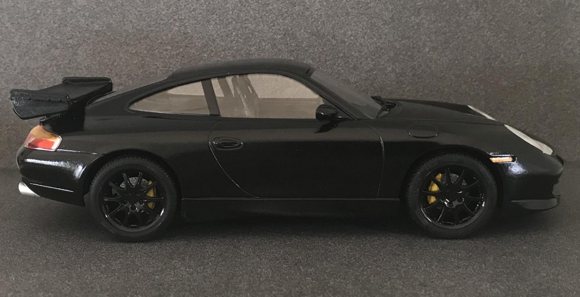 I picked this kit up second hand and partially started. The rear wing was missing so I replaced it with one from the Fast and the Furious Supra. Body and wheels painted in Rustoleum gloss black, number plate decals came from the Fujimi BMW 750iL kit. The fitment of all parts was excellent.