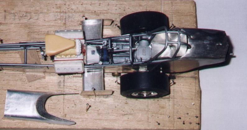 Thanks, Dave! I agree. It is more fun, outside the box! That dragster's looking great! Here's something I was working on, back in the late '90s. Never finished it, but I learned a lot during its construction. It's 1/25th scale, brass chassis, aluminum body panels, nose and tail hammered, formed and soldered tin. Sorry for the crappy photos. If I can dig this thing out and put it back together, maybe I'll shoot some new ones. Thanks again! -