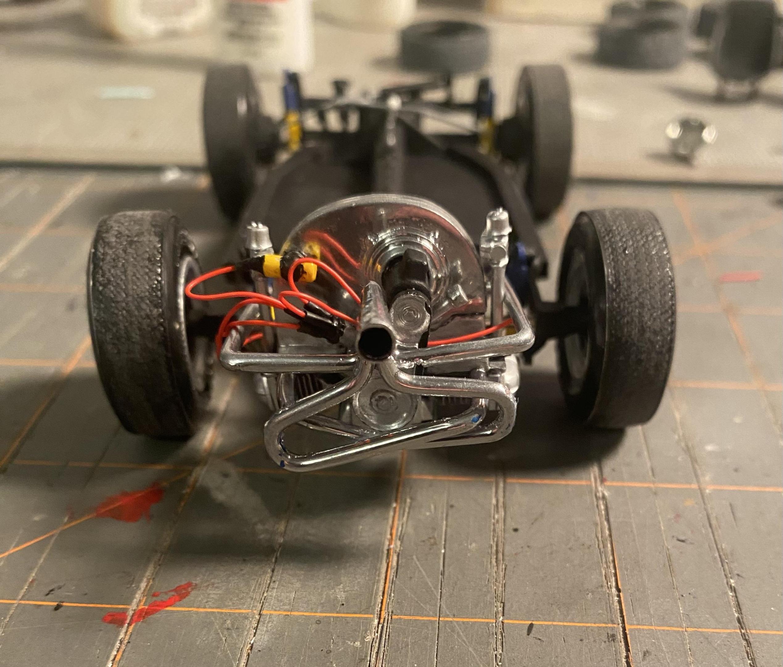 Wrapped up the chassis. The steering linkage gave me fits, and that little engine is pretty fiddly but I got it on four wheels. Just a few things left before I can wrap it up.