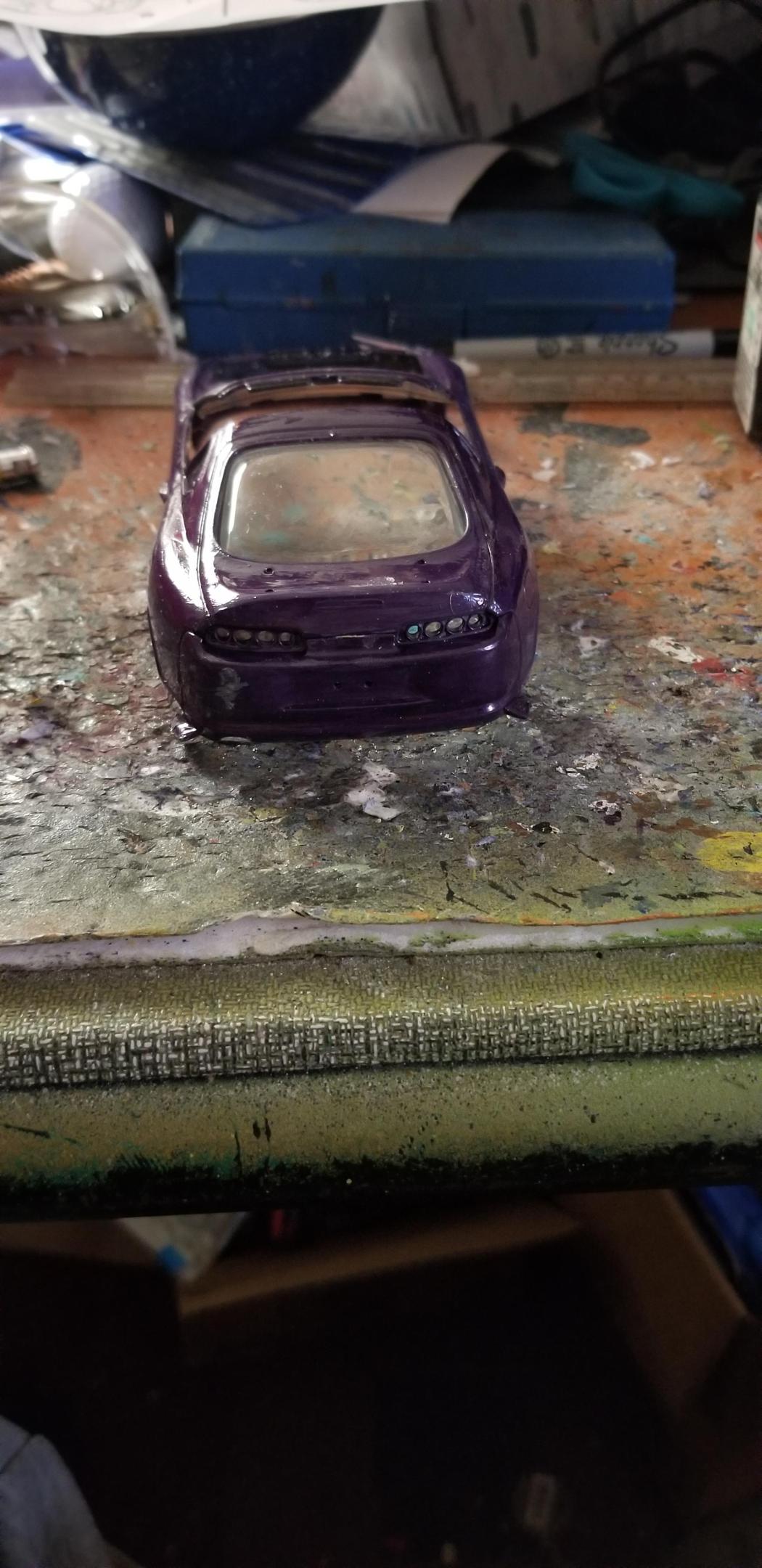 19. Here is where I am at currently with the Supra. I have the chassis pretty much done, just need to assemble the wheels and get them on. The interior is almost done with the exception of a nitrous oxide tank. I put the front and rear bumpers on the body, as well as the glass.