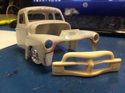 I cut off the grill from the resin 54 cab I got bout a year ago. The cab and grille was all a one piece cab. At the time I wanted to chrome the grille so I cut it off with sewing string. -