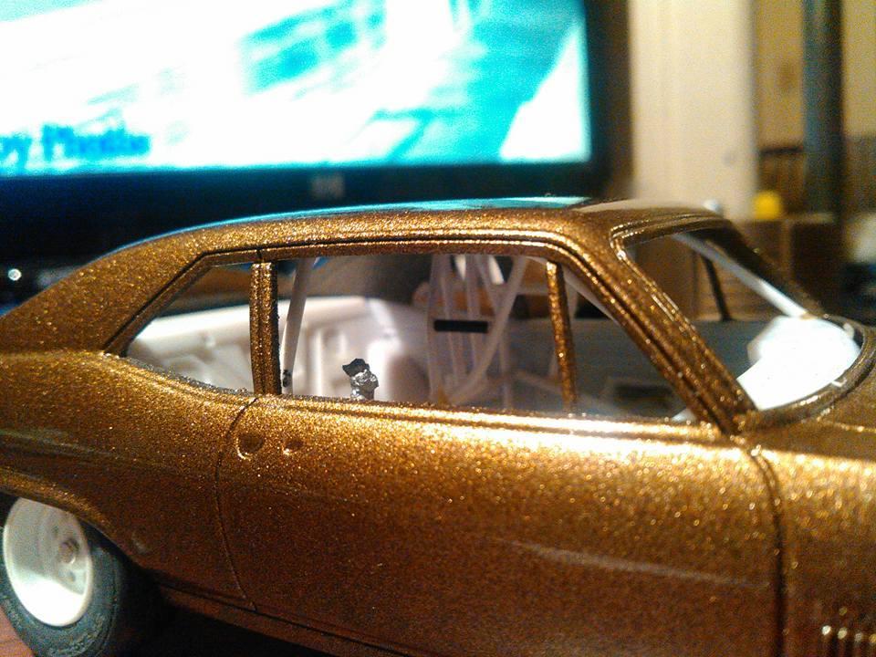 67 Camaro No Time All Motor Street Car. Powered By a Vcg Resins 572(close to 1:1 CI), Turbo 400 Transmission & Dominator Carburetor. Was paid to build as a father day gift the 1:1 is in the pics. The Pro Stars and Drag lites are from Madmodeling. Car is on 28x10.5 slick and stock suspension. Street Cars in grudge racing are classified as Full Interior(Backseats & Fronts, only a roll bar & full exhaust no side exit headers). Has stock fuel cell hood had some last minute paint problems so I will be sending it to him this week. This is probably my only truly complete build Lol & 1st completed 1 of 2015. Hope you all enjoy.