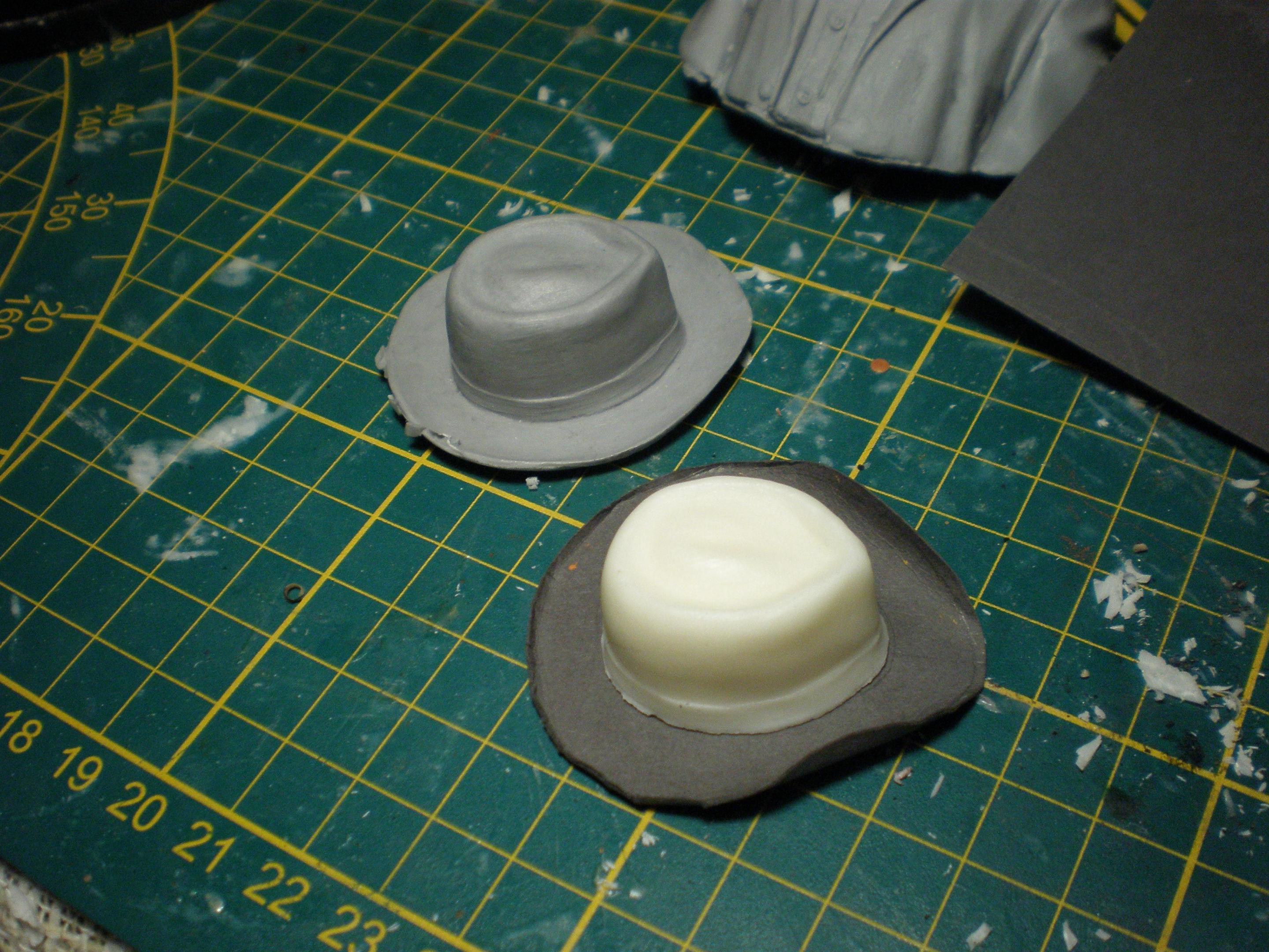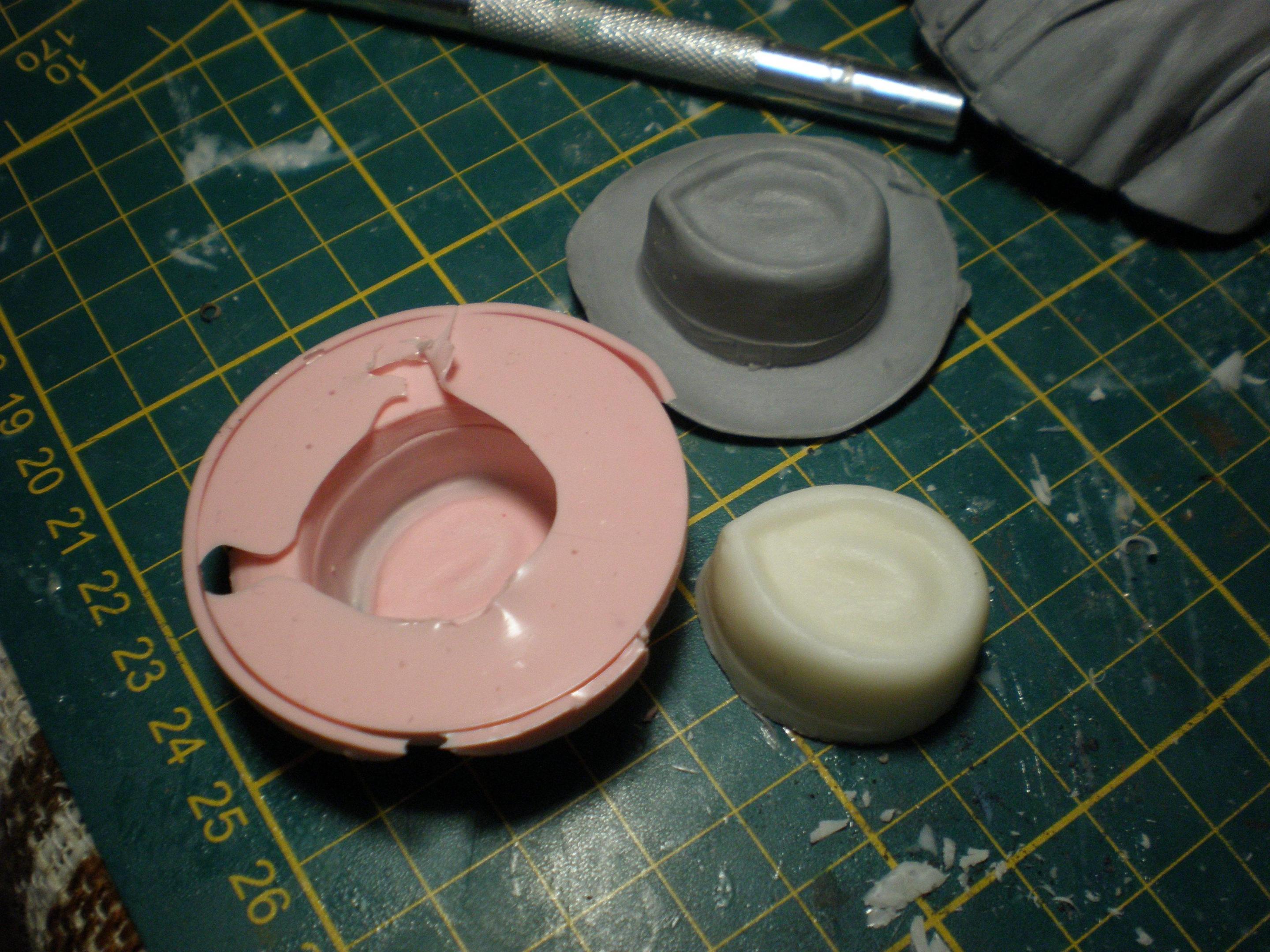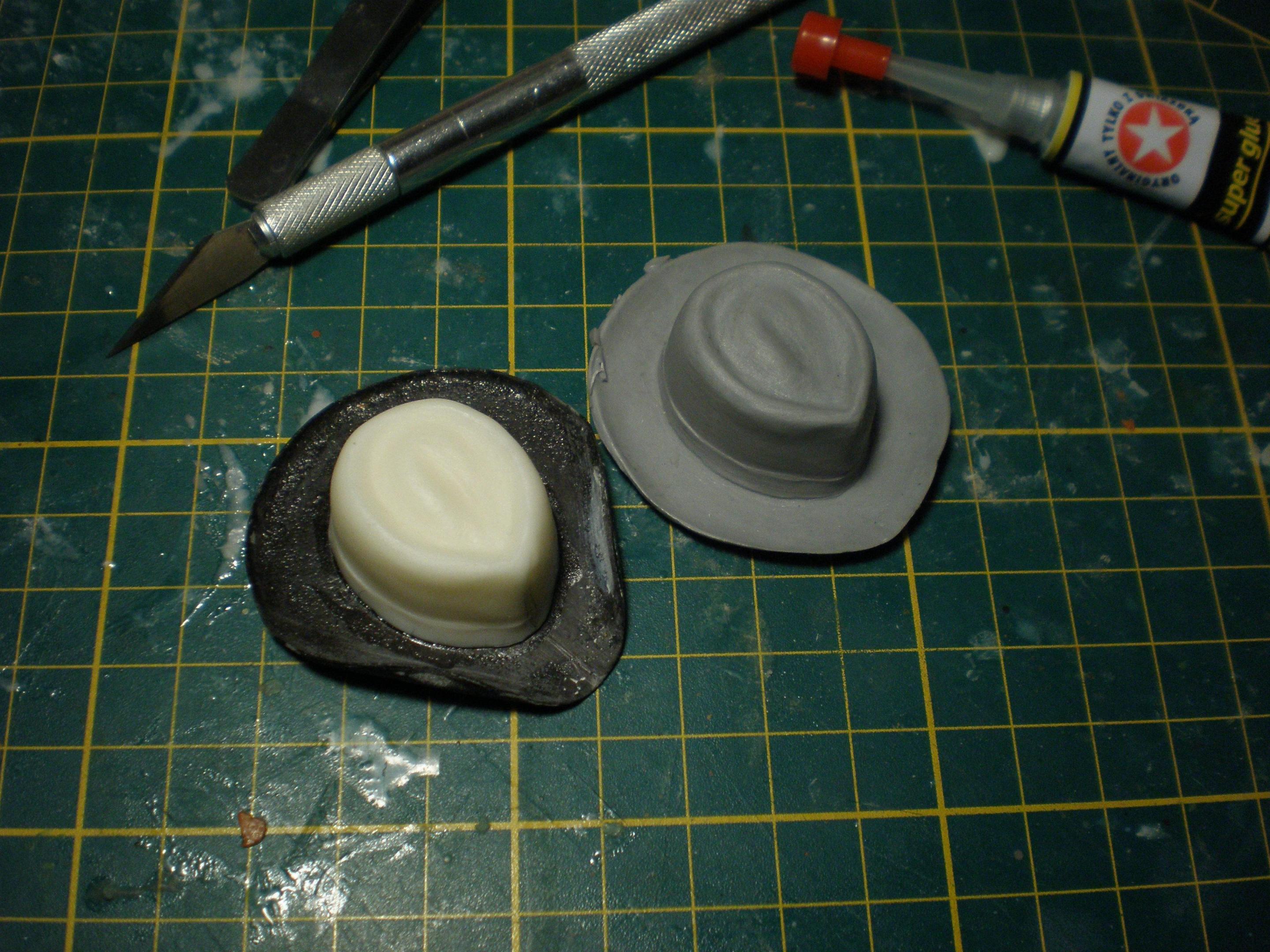 Okay, time to start. Hat.I decided not to take the risk of heating the brim of the hat and hot molding as I might not pull myself together. It was faster and cheaper to cast the crown itself.I used a fast, red catalyst - you really need to hurry, because it freezes immediately.Especially when we don't use a vacuum. Harry's hat - at rest - is best seen in the scene of the death of its owner: New brim: Keep safe.
