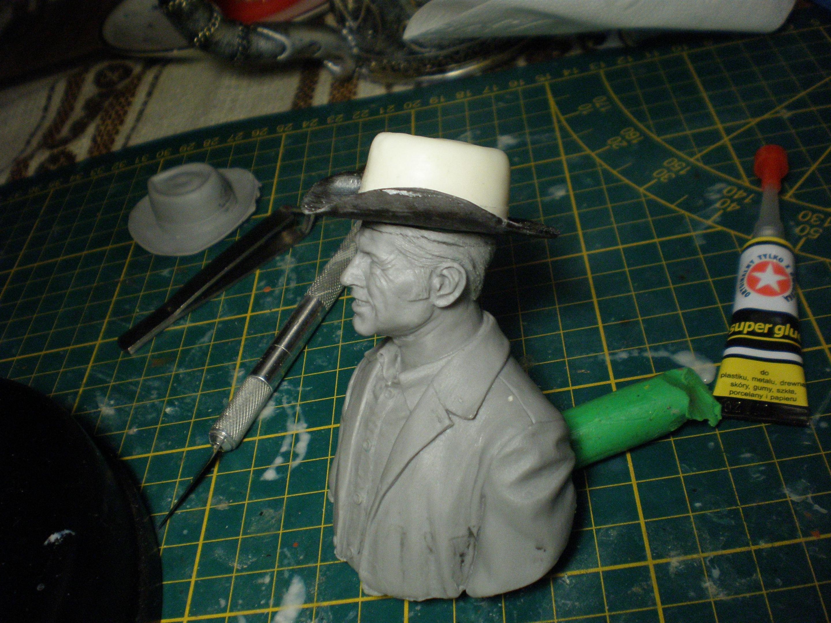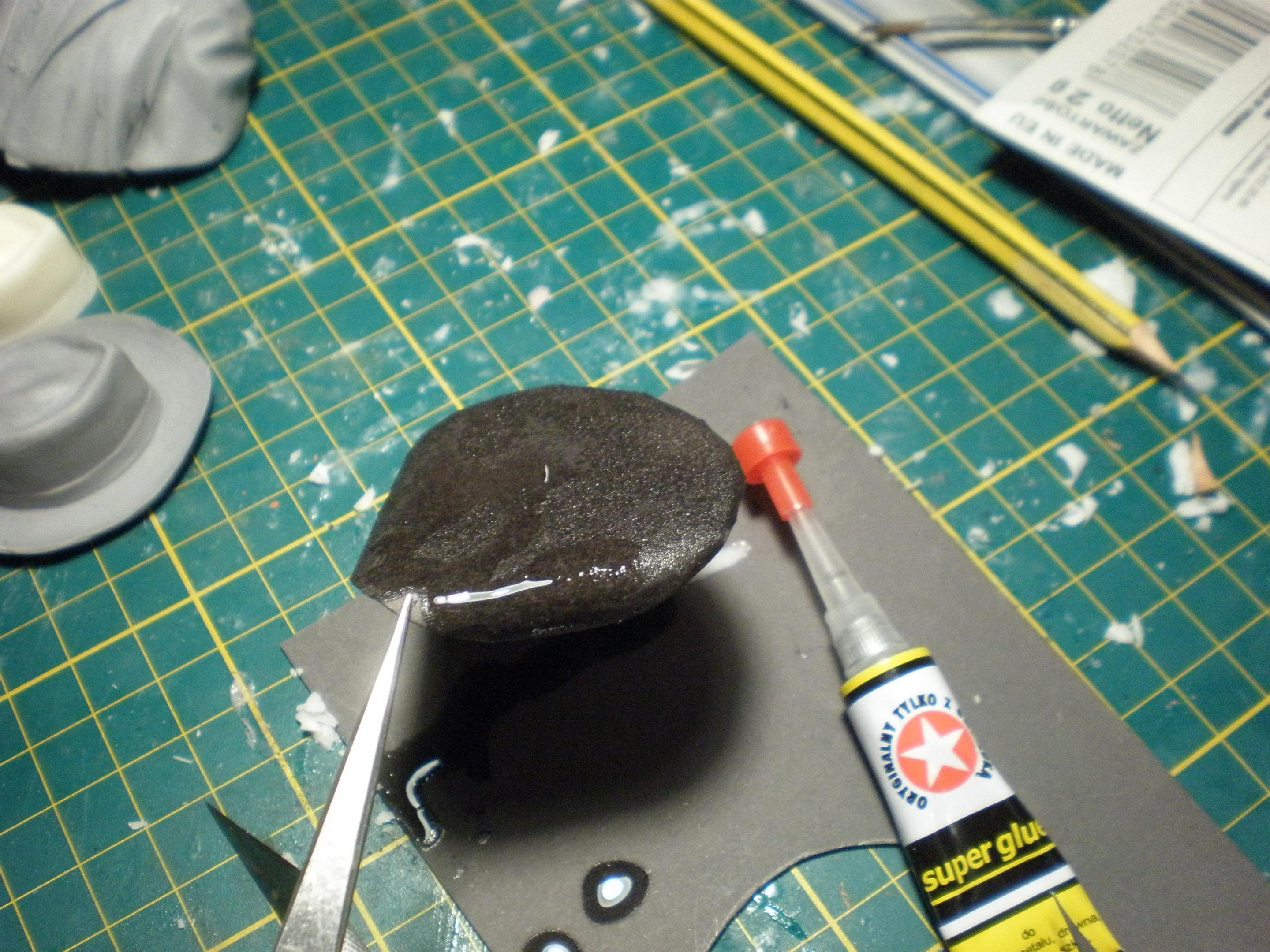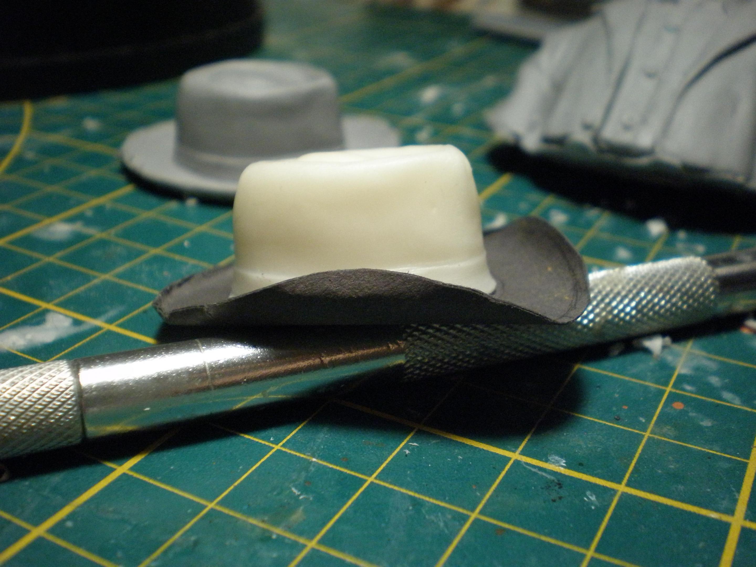 Okay, time to start. Hat.I decided not to take the risk of heating the brim of the hat and hot molding as I might not pull myself together. It was faster and cheaper to cast the crown itself.I used a fast, red catalyst - you really need to hurry, because it freezes immediately.Especially when we don't use a vacuum. Harry's hat - at rest - is best seen in the scene of the death of its owner: New brim: Keep safe.