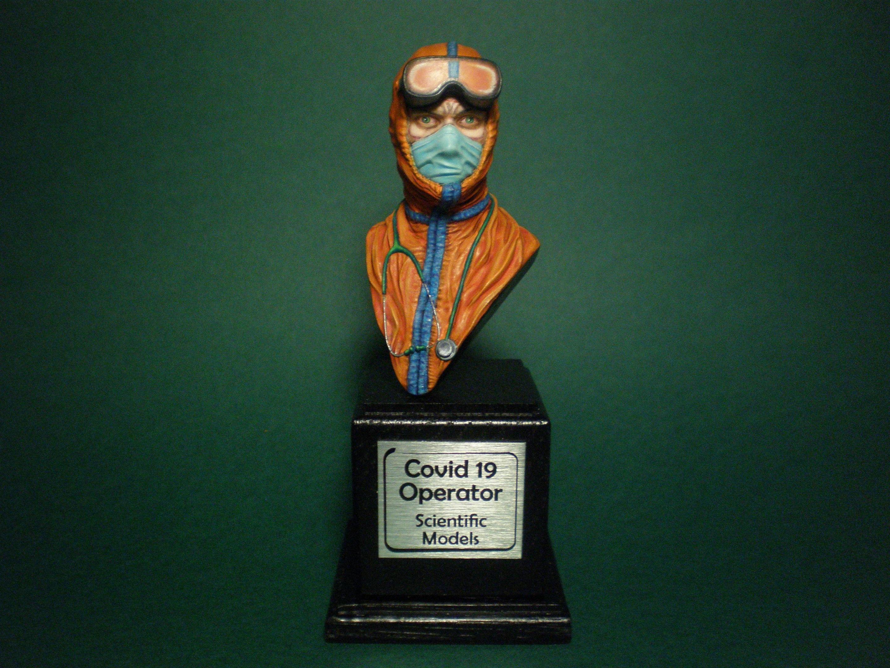 Covid-19 Operator. Gallery. Beautiful sculpt. The income from the sale went to a good cause, funding the account of one of the hospitals in Italy. No matter how we view the situation regarding ...demia, we must salute those who fought and are fighting in the front lines. Let's remember these photos of lifeguards after several dozen hours of on-call time. Painted with acrylics. Enjoy! Stay safe!