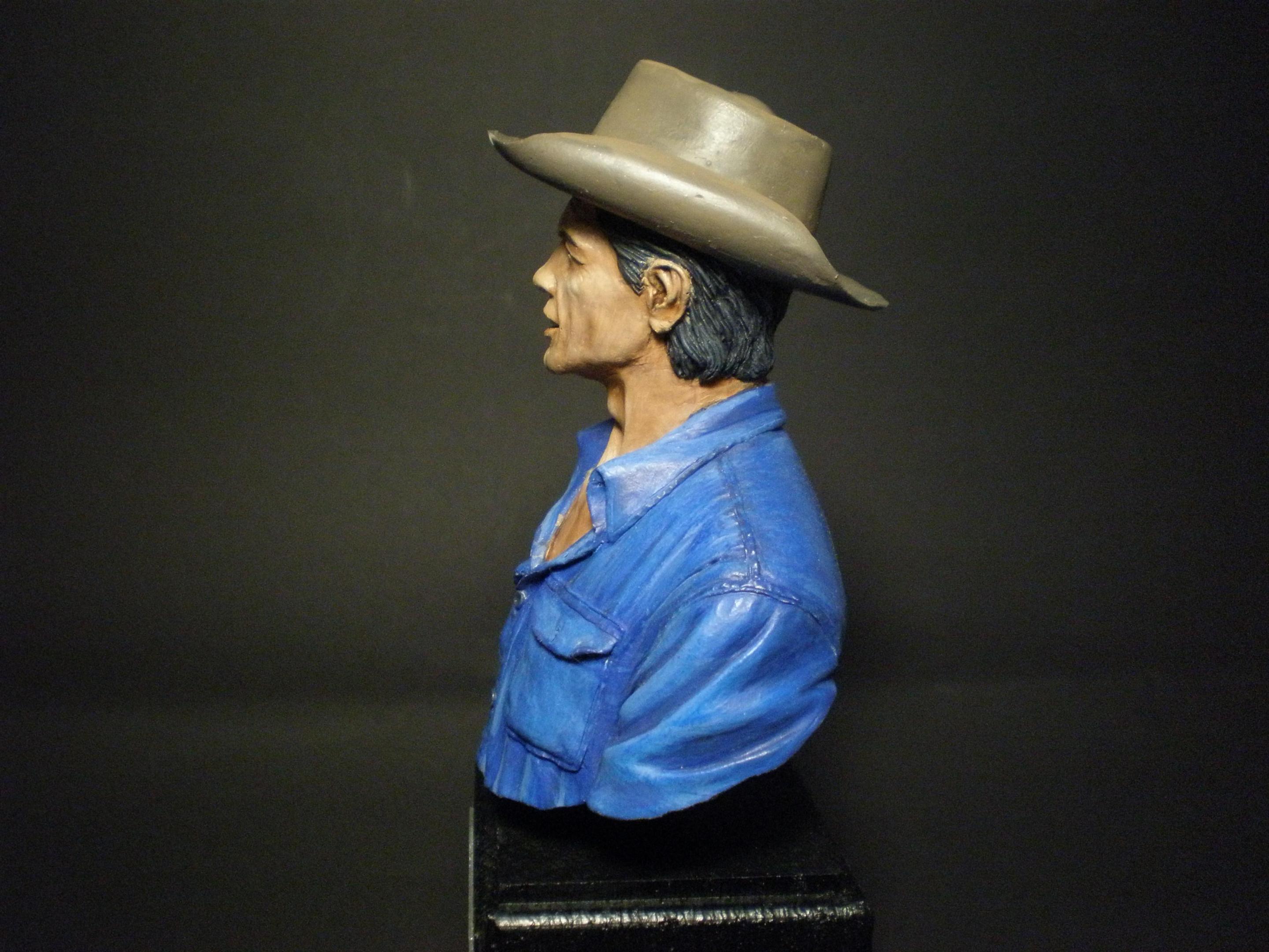 After more than a year - the third. A fourth, actually. Because Harry Luck is the second in the team. Chris Adams mentions him when recruiting Bernardo to the group. Remember what O'Reilly replied to the remark that he was broke in the chopping scene? "Nah. I'm doing this because I'm an eccentric millionaire. Do you remember in what movie with Charles Bronson there was a similar scene of chopping wood? This bust gave me a hard time, washed and painted again several times, I was extremely reluctant to paint the shirt, some folds on it, in my opinion, unnecessary. I couldn't find the color for a long time. It got to the point that the resin was starting to decline and I had to glue small defects with plasticine. Similarity ok, according to the film frame. I have seen it painted differently and I am pleased with the result. Britt's on his way.