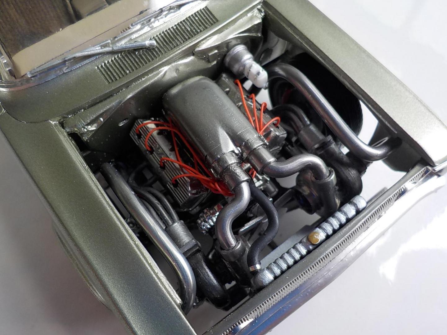 I wanted something different, as the small block Chev just looked too small for what i was after, so went to Mr google, and i found where they are making Hemi heads for LS Chevs in 1:1, so i just thought, " why not'" , , so i scratch built everything to fit on the Chev block. Just to be different, and give it a bit more size and aggression. I call it a CHEMI..