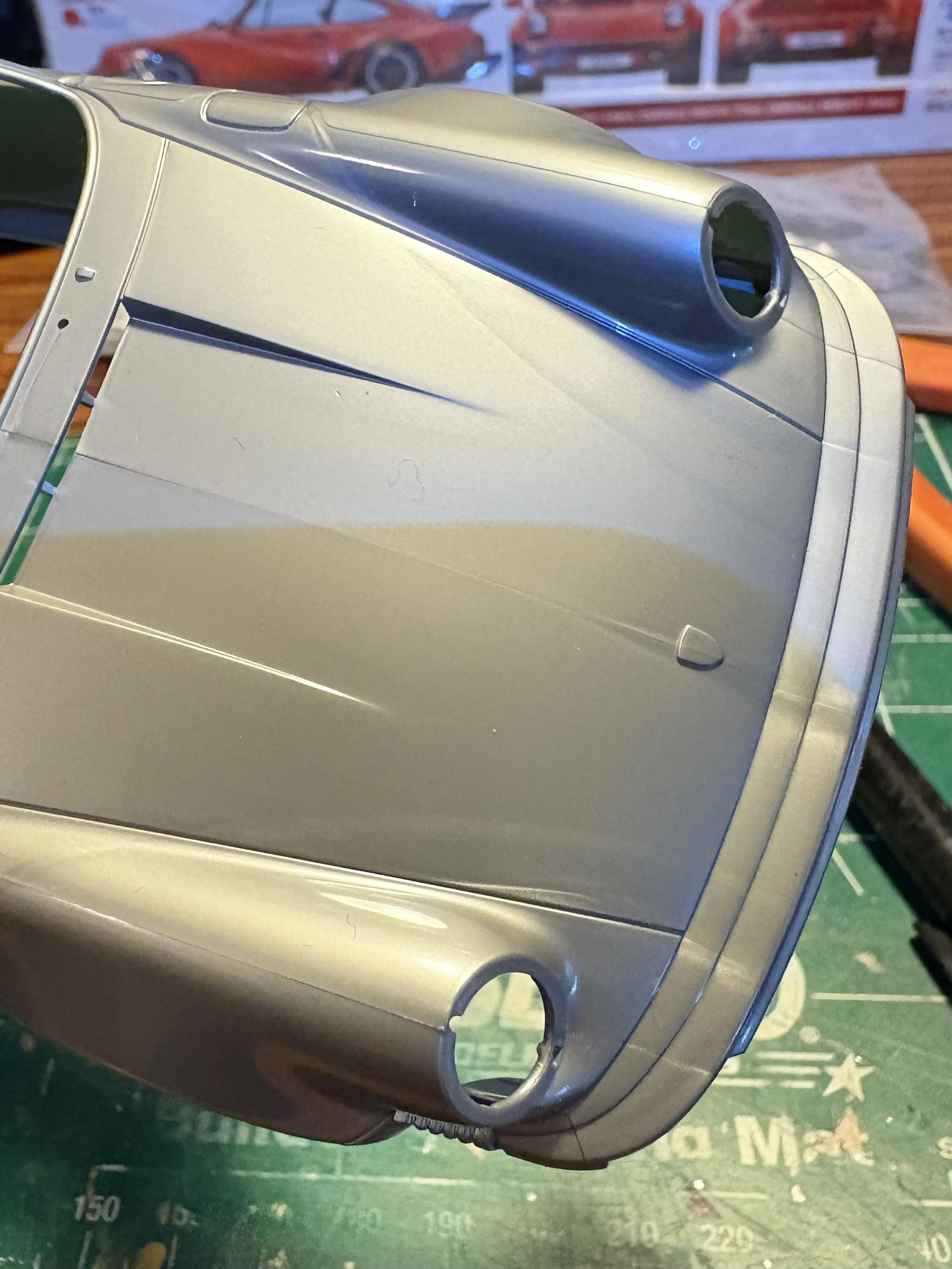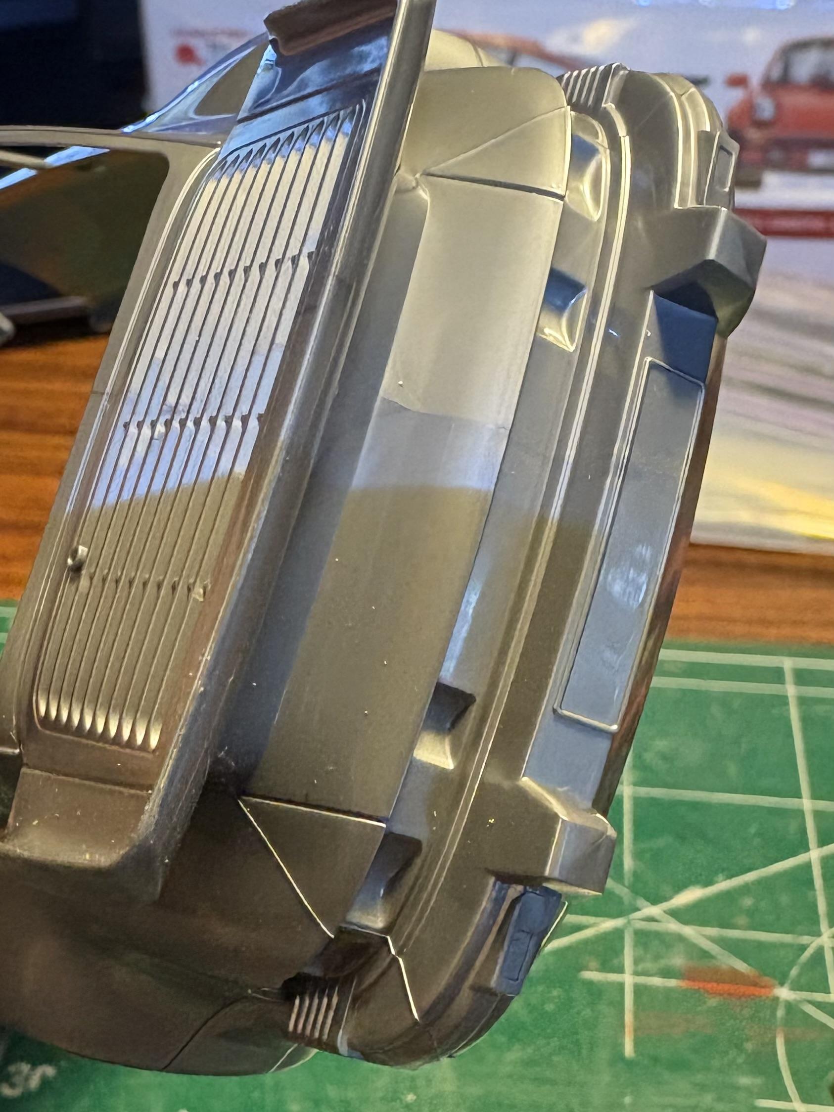 Since I’m working out of town I figured I would attempt another Porsche 911. Sunday 9/21/25, just cleaning up mold lines, which are mostly hidden under the rear wing and bumper and the front fenders. But, I got time…