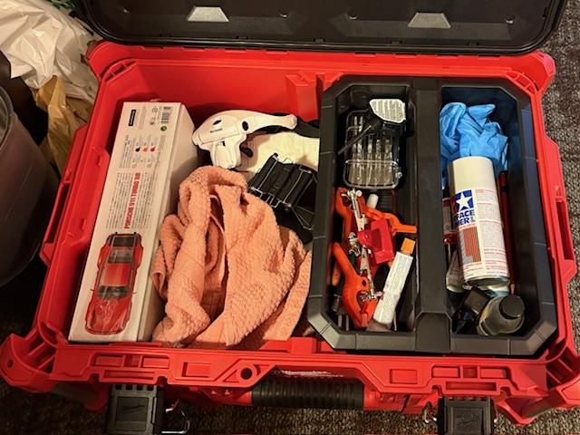 Being away from home does have challenges, I'm only going back home every other weekend right now. Not having my model equipment is a challenge also. But I can build a travel box pretty easily. Every time I reach for something a write it down to see if I can bring it with me or purchase a new. My son Dylan gave me this Milwaukee Packout for a travel kit and there is most always a hobby shop nearby. More on the 911 to come...
