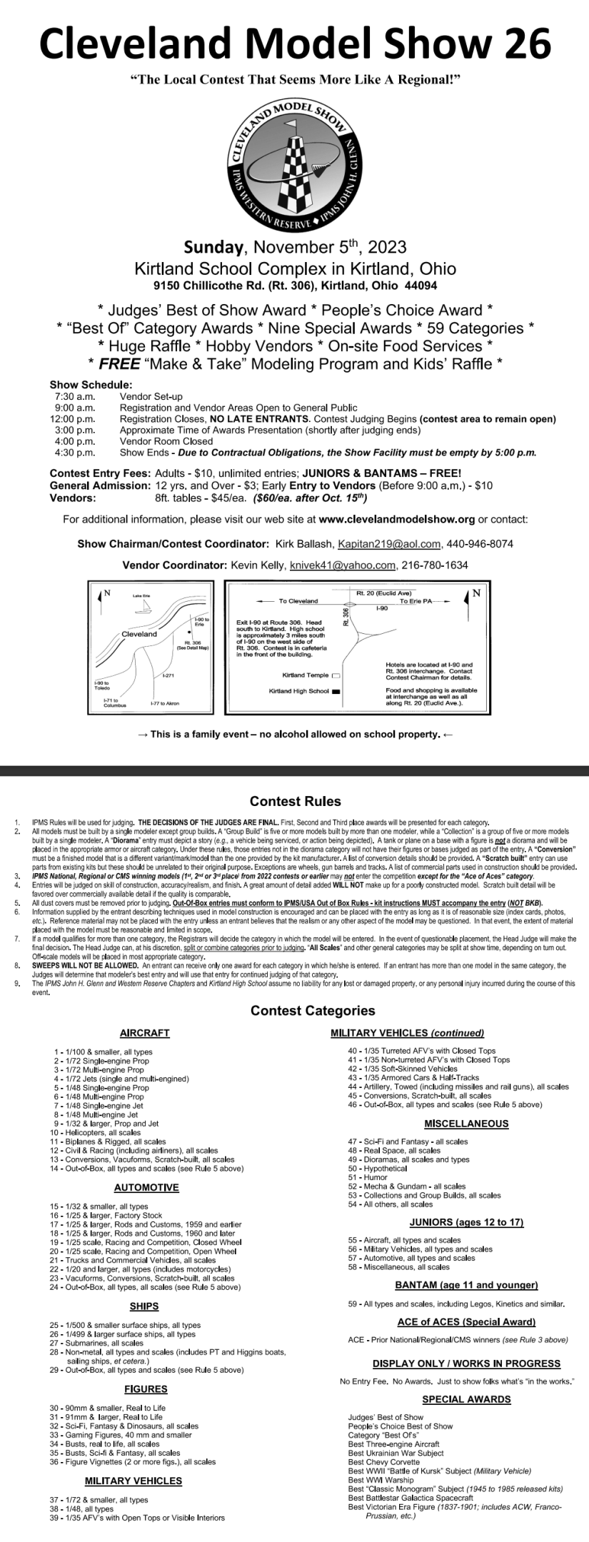 IPMS Western Reserve / John H. Glen chapters annual model contest and swap meet at the Kirtland School Complex.