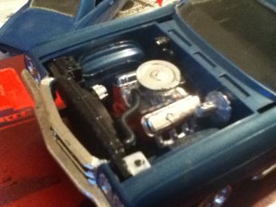 Update! Not much has been happening with the model lately. I've been taking my time since I'm a beginner. Here is the Tunnel Ram Intake for it's Big Block! All painted up with carburetors glued on. American Racing S200 "Daisy" Mags painted up. They didn't come with the part to attach it to the axle so we had to modify it a little. Only the rears are completed. The hood scoop I ordered for it. I think it should be taller so it'll be modified later in the build. Now for the Story of my Big Block Problems. I initially ordered a Big Block Chevy engine off of eBay at just under $10 and was so ecstatic that I could find one this cheap (they usually run about $20). So, I waited a couple days until it arrived and upon further inspection it didn't have a Muncie Transmission, which is in the movie car. When I contacted the seller about the engine and what kit it came from, he said it was from a Pro Stock Firebird model. When i looked the model up it said that the engine was 500 cubic inches and had 1000 horsepower. Needless to say, I wasn't putting that engine in this replica. Then a couple of days later I spotted another $10 big block Chevy and to my surprise, it was PERFECT! In the picture below, the Tunnel Ram is actually on backwards, WHOOPS! The Engine is actually done right now and, yes, the Tunnel Ram is turned around. I just have to take pictures.